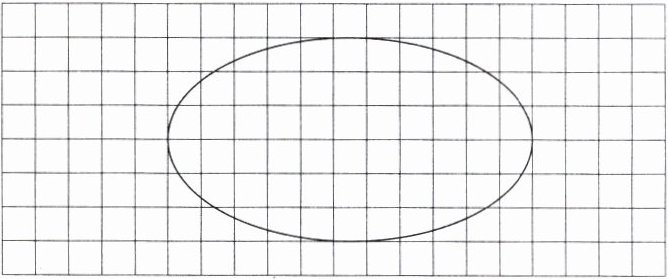 3. 如下图是一个椭圆,数一数,再算出它的面积大约是多少平方厘米。(每个小方格表示 1 平方厘米)