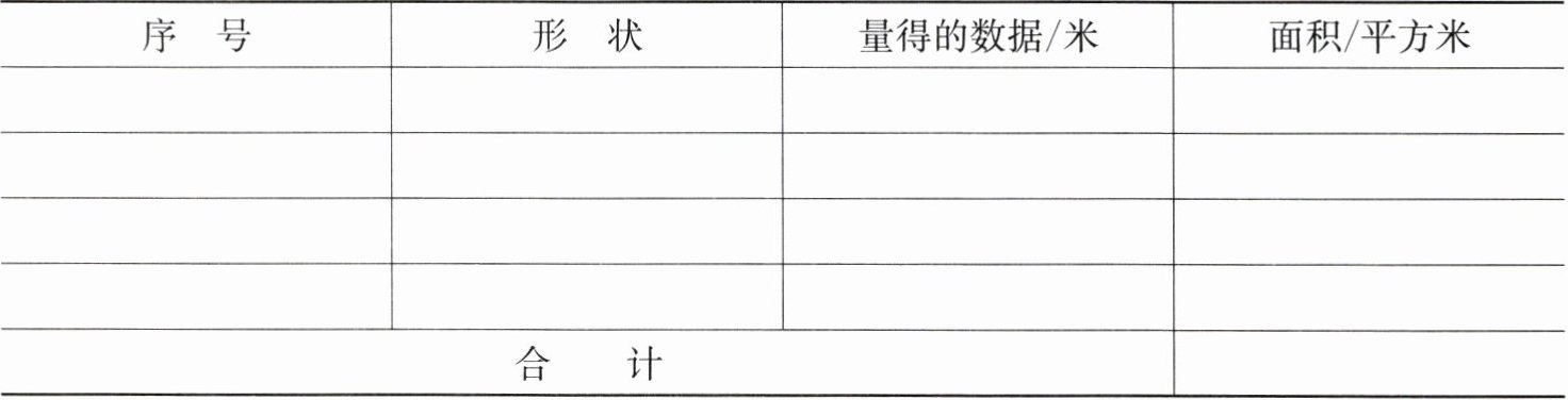 2. 测量和计算自己所在小区或学校内某处草坪、花圃、树木或其他绿地的占地面积,并把结果记录在下表中。