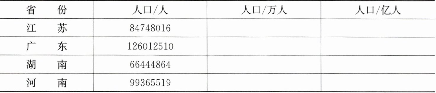 | 省份 | 人口/人 | 人口/万人 | 人口/亿人 |