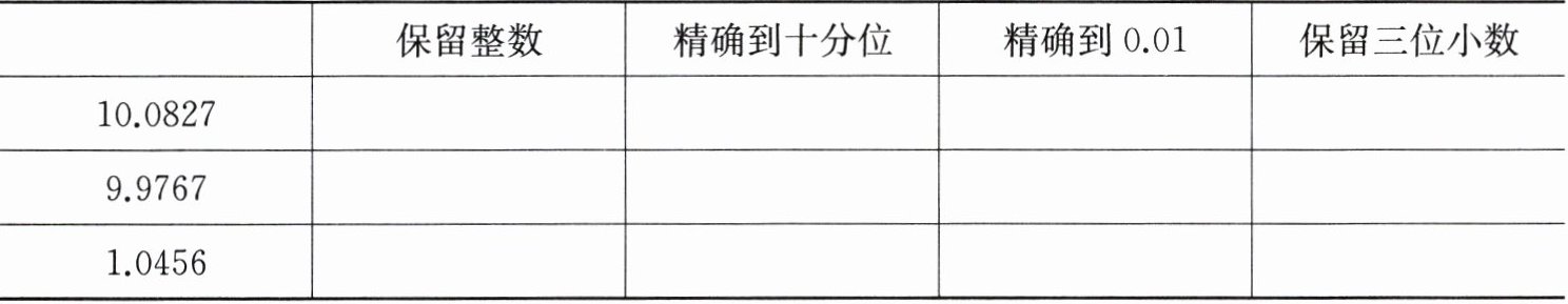 | | 保留整数 | 精确到十分位 | 精确到 0.01 | 保留三位小数 |