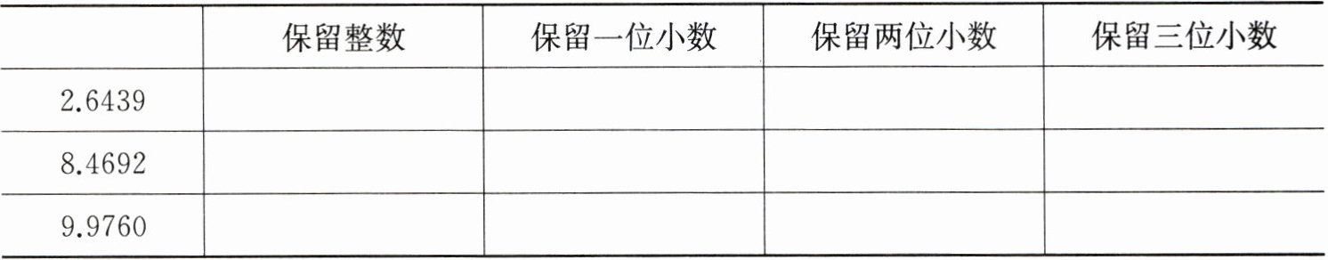 | | 保留整数 | 保留一位小数 | 保留两位小数 | 保留三位小数 |