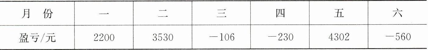 |盈亏/元|2200|3530|-106|-230|4302|-560|