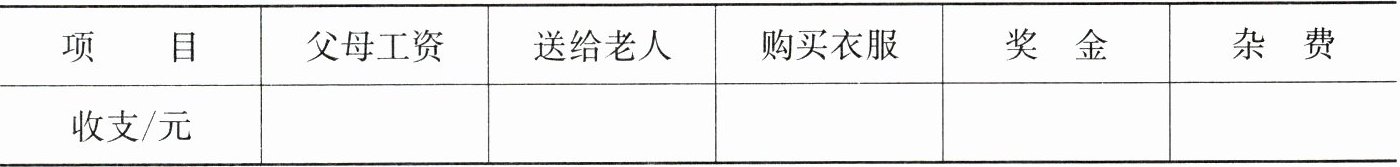 |项 目|父母工资|送给老人|购买衣服|奖 金|杂 费|