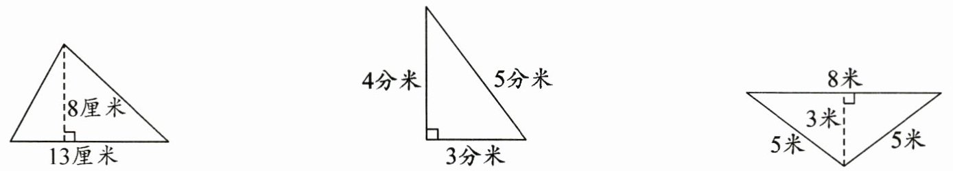 3. 在方格纸中画$3个面积是6$平方厘米但形状不同的三角形。(每格按$1$平方厘米计算)