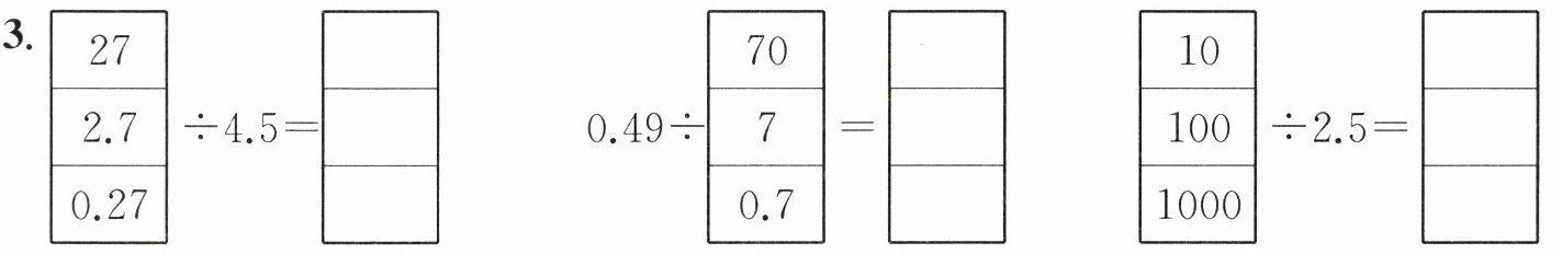 |2.7|÷4.5= |7|0.49÷= |100|÷2.5= |