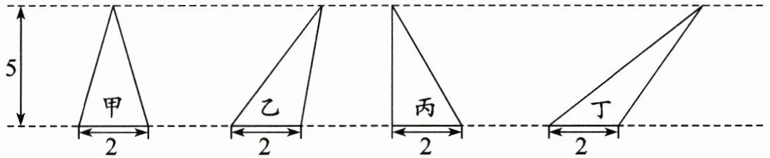 我能行 3. 计算下面每个三角形的面积,你发现了什么? (单位:厘米)