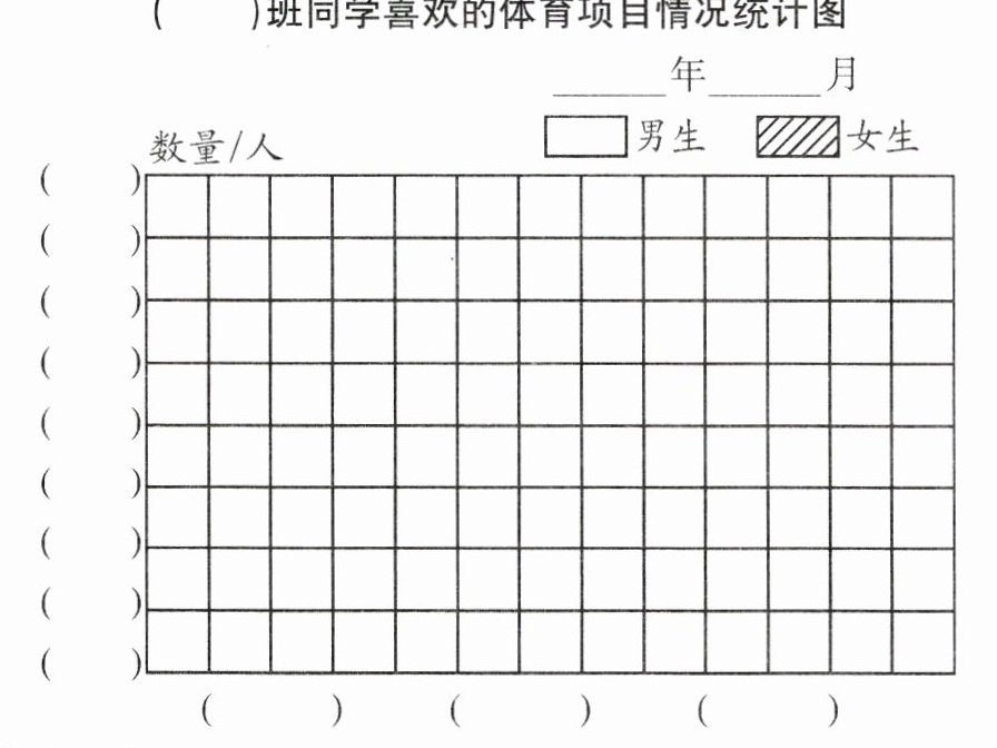 3. 体育老师要了解班级里喜欢跑步、球类运动、跳绳的人数情况,请你在班级里帮体育老师完成统计工作,并完成下表。(每人只选一个项目)