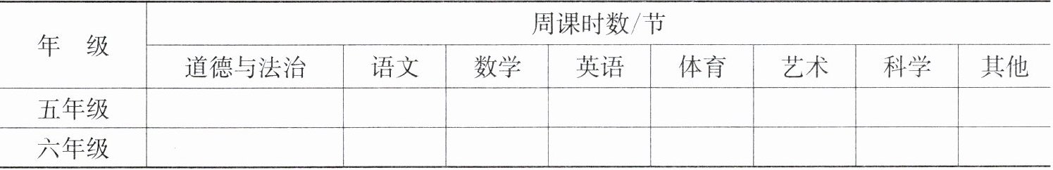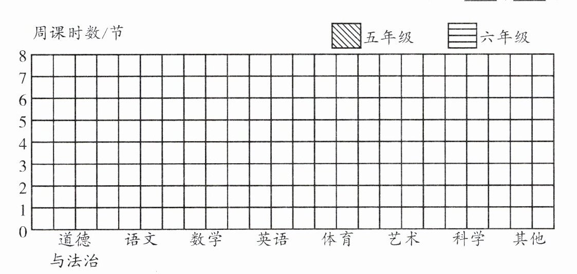 1. 了解自己学校五、六年级一周课程设置情况,完成统计表和统计图。