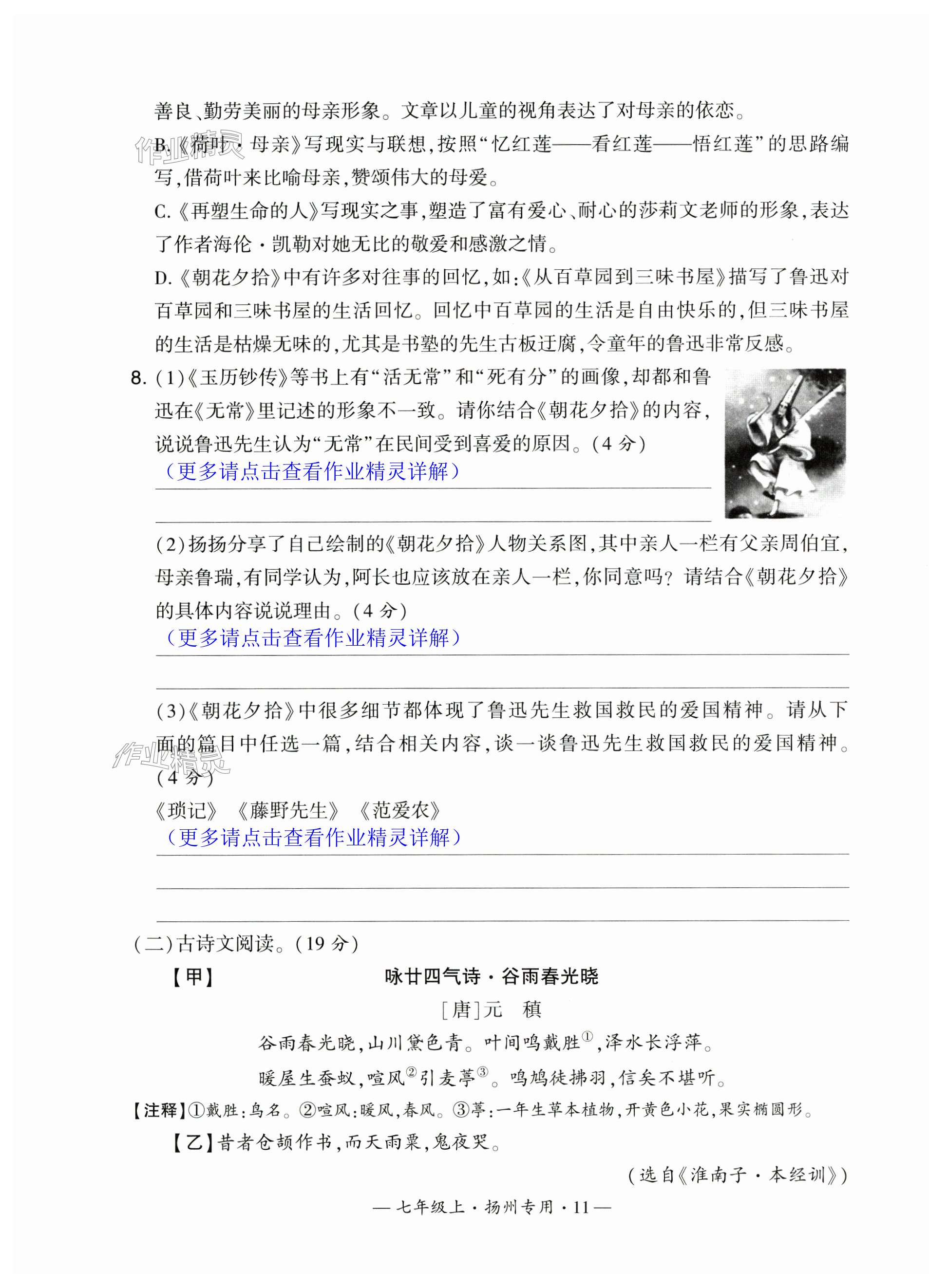 2024年学霸组合训练七年级语文上册人教版扬州专版