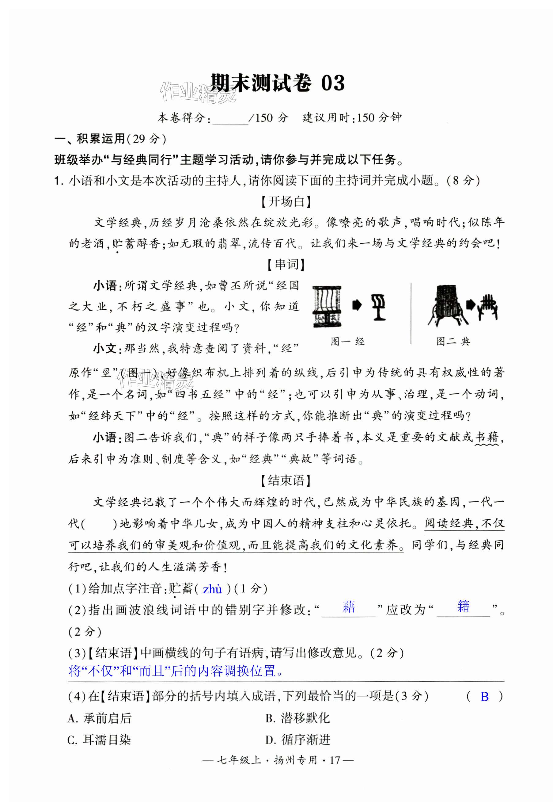 注:目前有些书本章节名称可能整理的还不是很完善,但都是按照顺序排列的,请同学们按照顺序仔细查找。练习册 2024年学霸组合训练七年级语文上册人教版扬州专版 答案主要是用来给同学们做完题方便对答案用的,请勿直接抄袭。