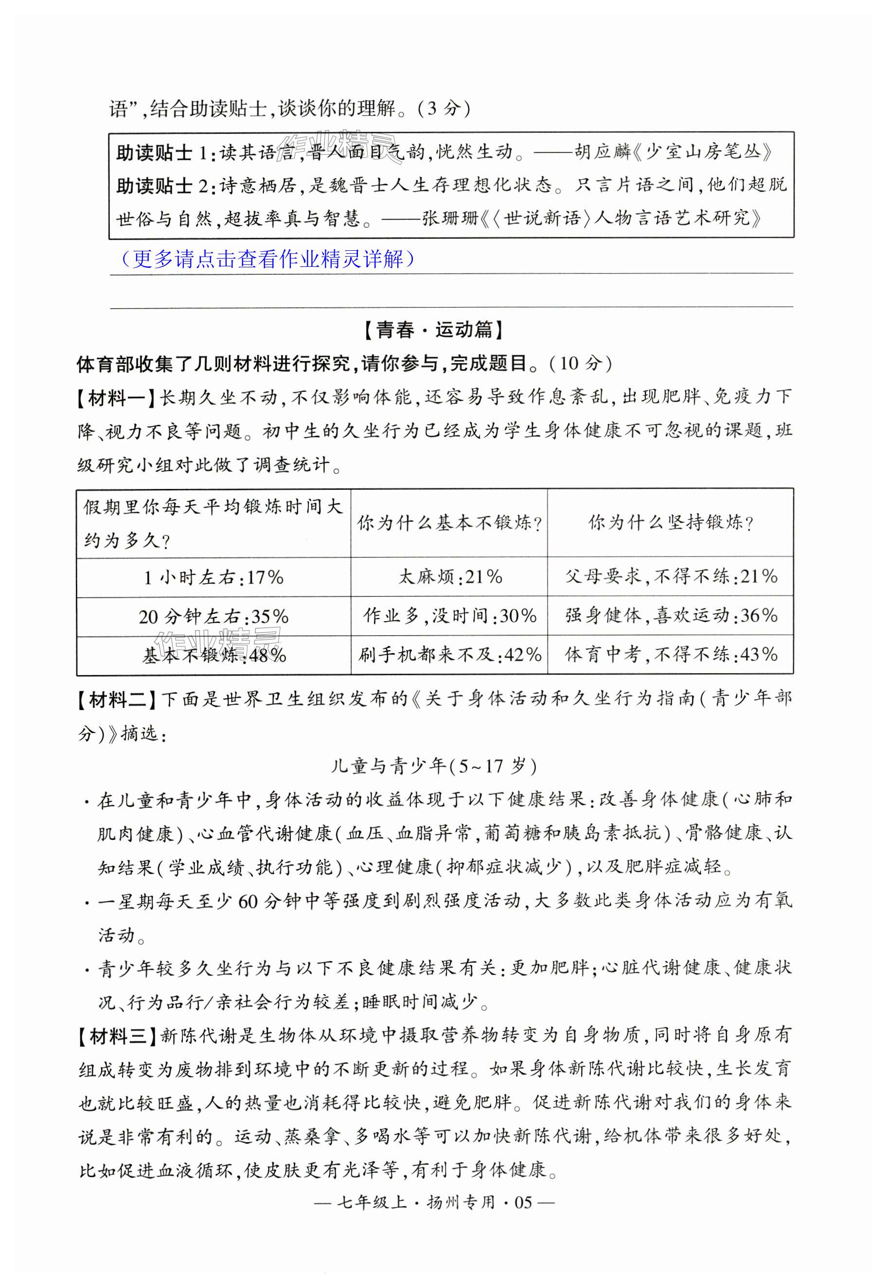 注:目前有些书本章节名称可能整理的还不是很完善,但都是按照顺序排列的,请同学们按照顺序仔细查找。练习册 2024年学霸组合训练七年级语文上册人教版扬州专版 答案主要是用来给同学们做完题方便对答案用的,请勿直接抄袭。