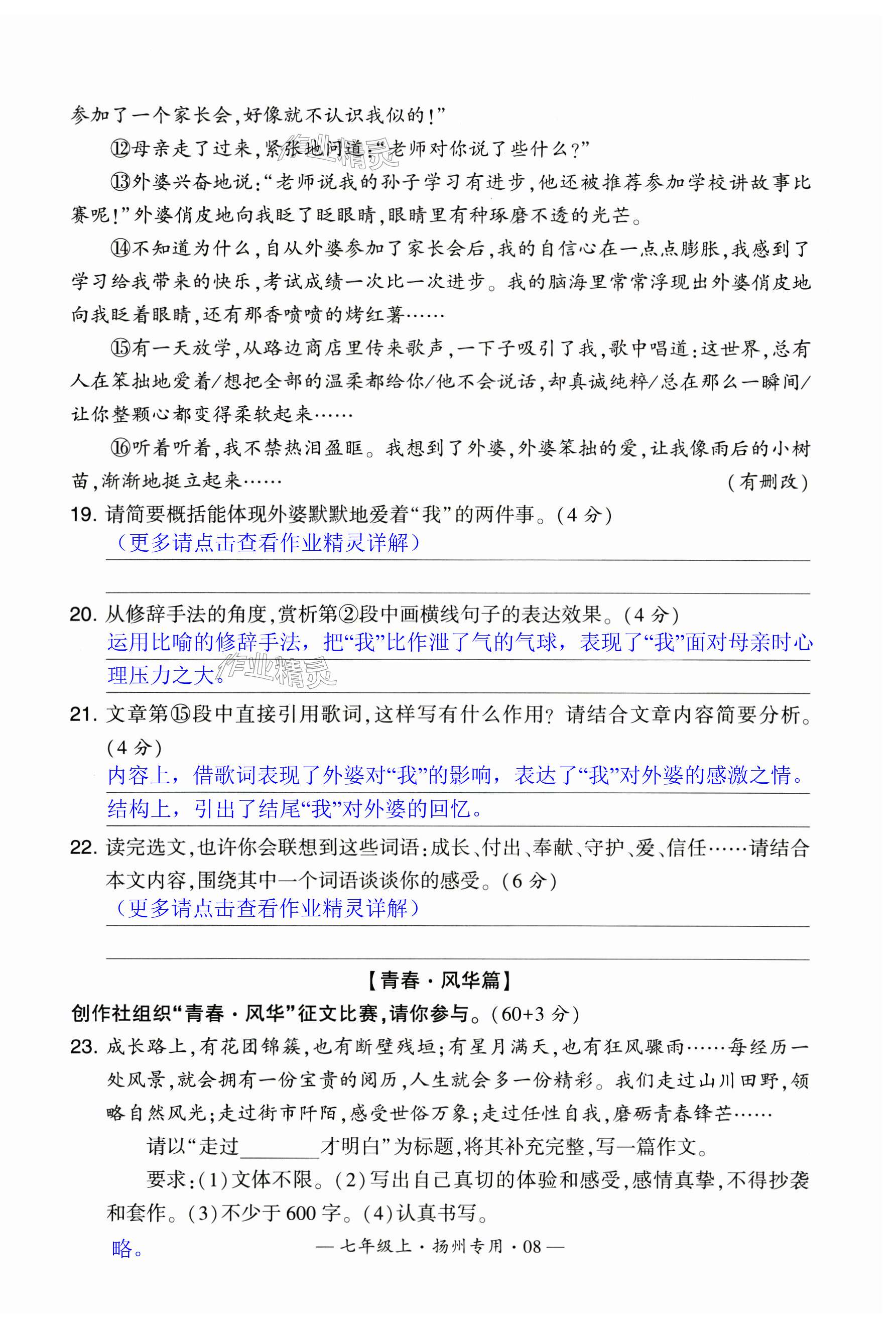 注:目前有些书本章节名称可能整理的还不是很完善,但都是按照顺序排列的,请同学们按照顺序仔细查找。练习册 2024年学霸组合训练七年级语文上册人教版扬州专版 答案主要是用来给同学们做完题方便对答案用的,请勿直接抄袭。
