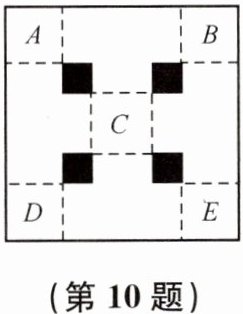 10. 某展馆建筑模型的平面图如图所示,展馆的平面图是一个大正方形,中间四个全等的小正方形(阴影部分)是支撑展馆的核心柱,标记A、B、C、D、E的五个全等正方形是展厅,已知核心柱的边长比展厅边长的一半多1 m,展馆的面积刚好是四个核心柱面积和的9倍,求核心柱的边长.
