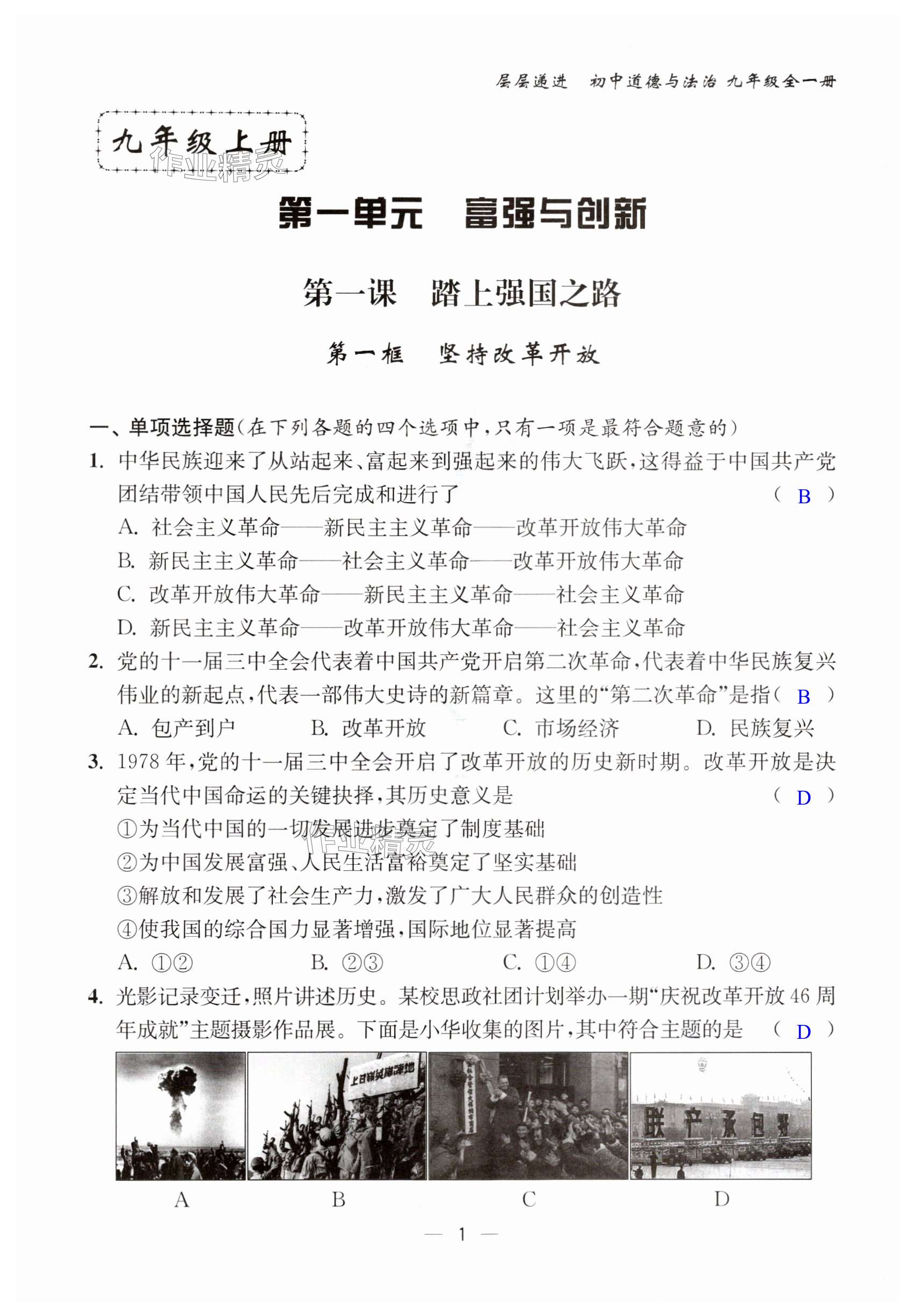注:目前有些书本章节名称可能整理的还不是很完善,但都是按照顺序排列的,请同学们按照顺序仔细查找。练习册 2024年层层递进九年级道德与法治全一册人教版 答案主要是用来给同学们做完题方便对答案用的,请勿直接抄袭。