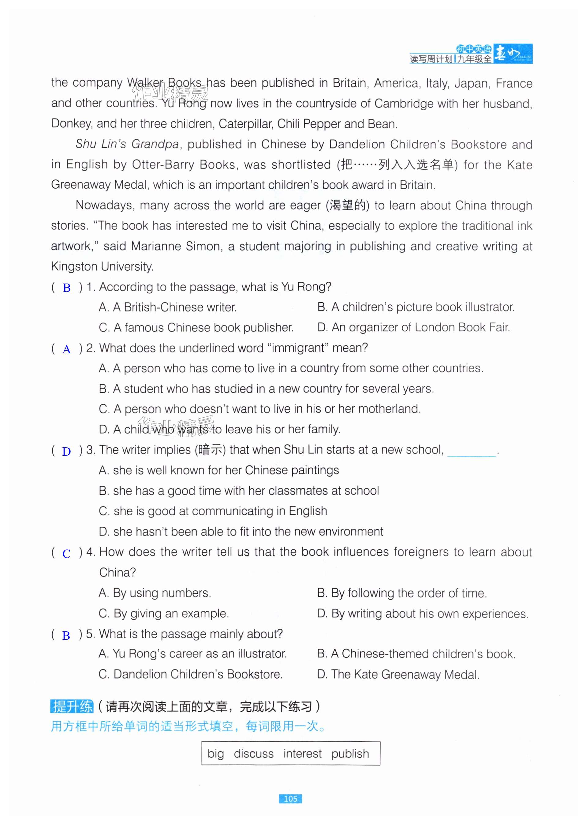 注:目前有些书本章节名称可能整理的还不是很完善,但都是按照顺序排列的,请同学们按照顺序仔细查找。练习册 2024年春如金卷读写周计划九年级英语全一册沪教版 答案主要是用来给同学们做完题方便对答案用的,请勿直接抄袭。