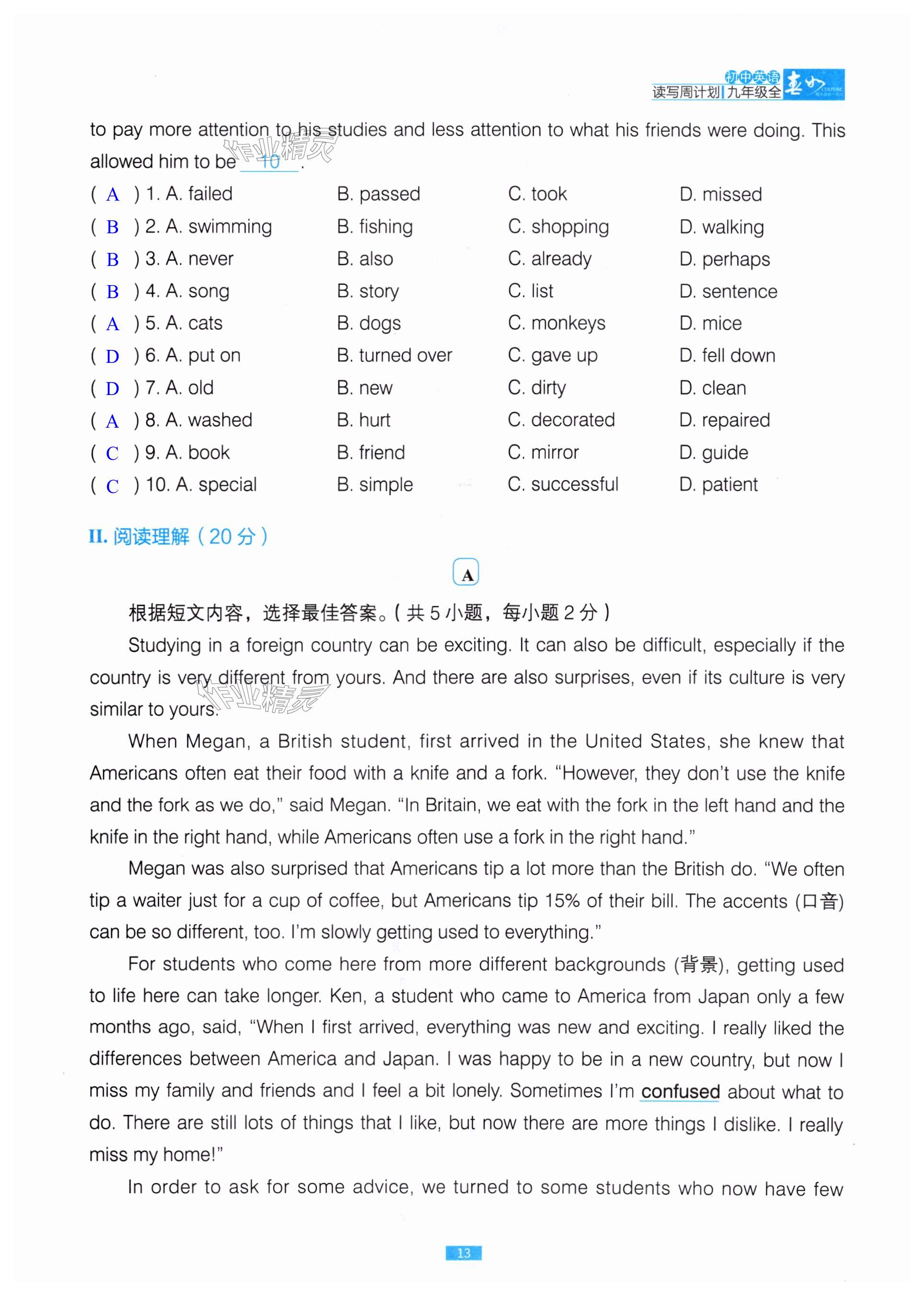 注:目前有些书本章节名称可能整理的还不是很完善,但都是按照顺序排列的,请同学们按照顺序仔细查找。练习册 2024年春如金卷读写周计划九年级英语全一册沪教版 答案主要是用来给同学们做完题方便对答案用的,请勿直接抄袭。