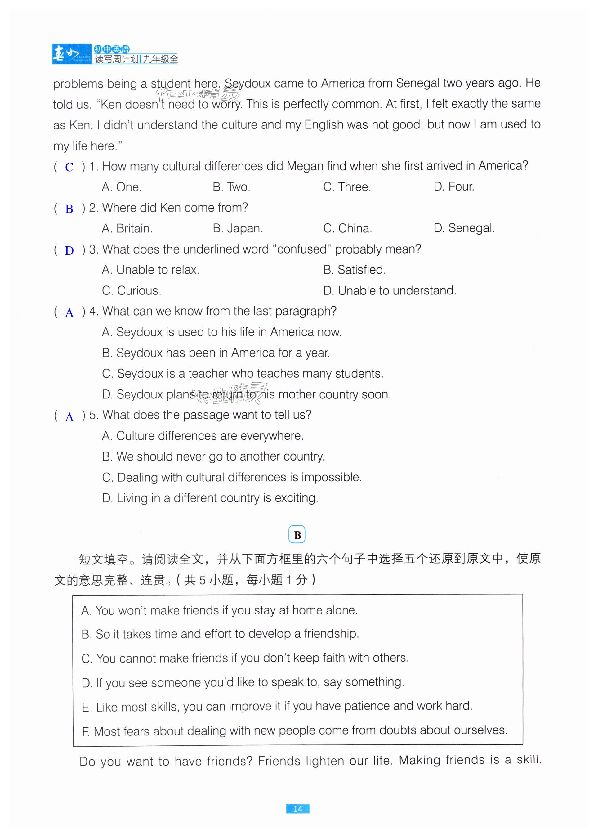 注:目前有些书本章节名称可能整理的还不是很完善,但都是按照顺序排列的,请同学们按照顺序仔细查找。练习册 2024年春如金卷读写周计划九年级英语全一册沪教版 答案主要是用来给同学们做完题方便对答案用的,请勿直接抄袭。