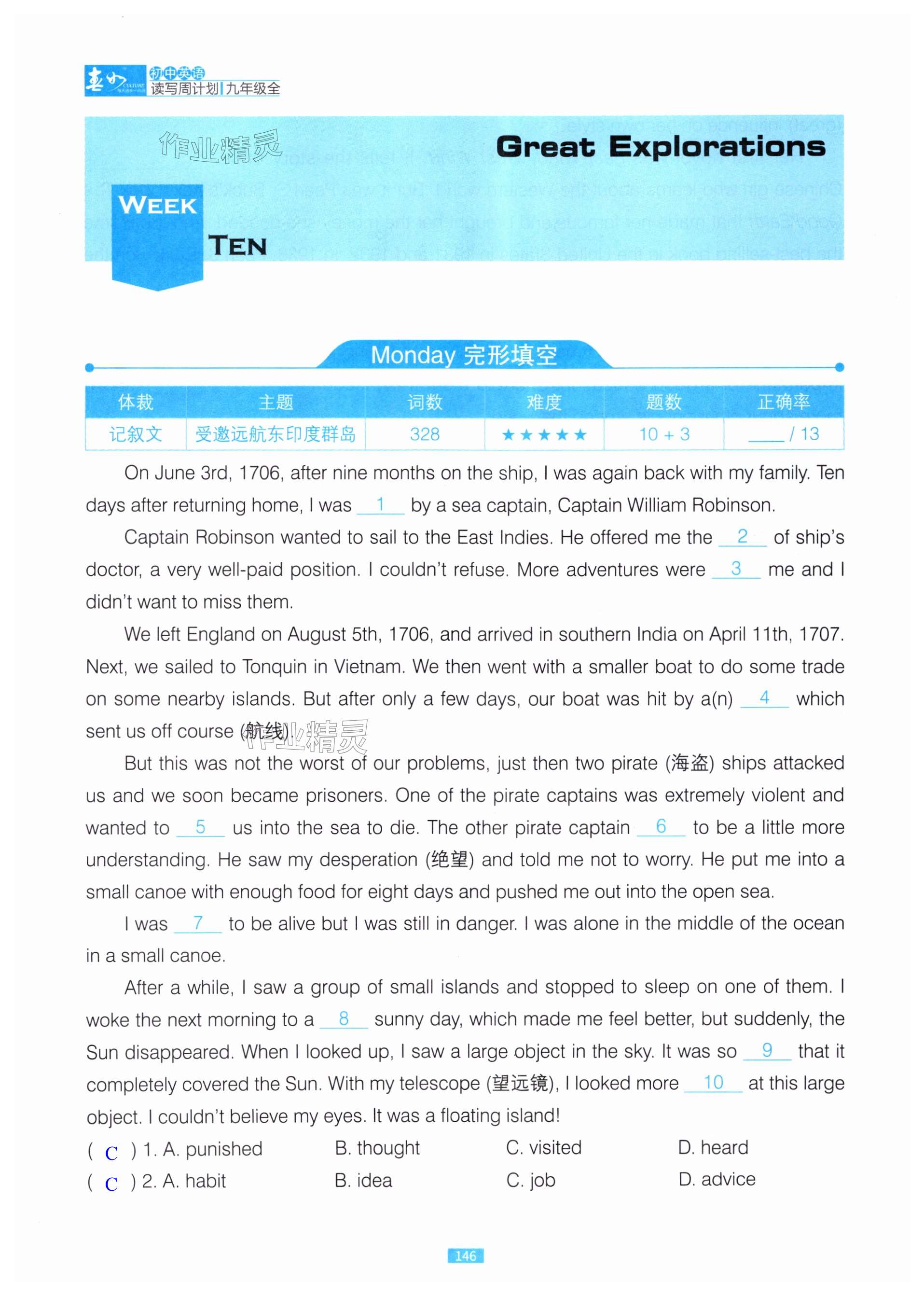 注:目前有些书本章节名称可能整理的还不是很完善,但都是按照顺序排列的,请同学们按照顺序仔细查找。练习册 2024年春如金卷读写周计划九年级英语全一册沪教版 答案主要是用来给同学们做完题方便对答案用的,请勿直接抄袭。