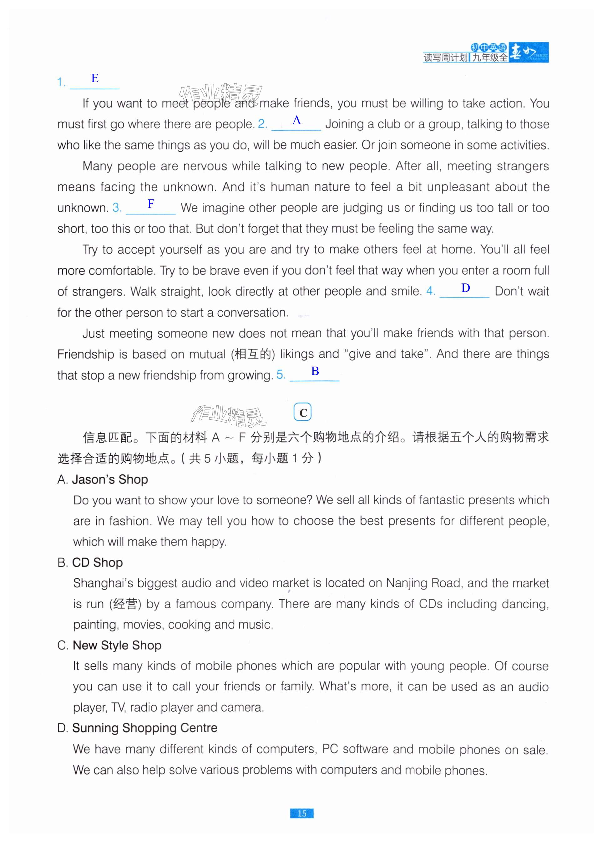 注:目前有些书本章节名称可能整理的还不是很完善,但都是按照顺序排列的,请同学们按照顺序仔细查找。练习册 2024年春如金卷读写周计划九年级英语全一册沪教版 答案主要是用来给同学们做完题方便对答案用的,请勿直接抄袭。
