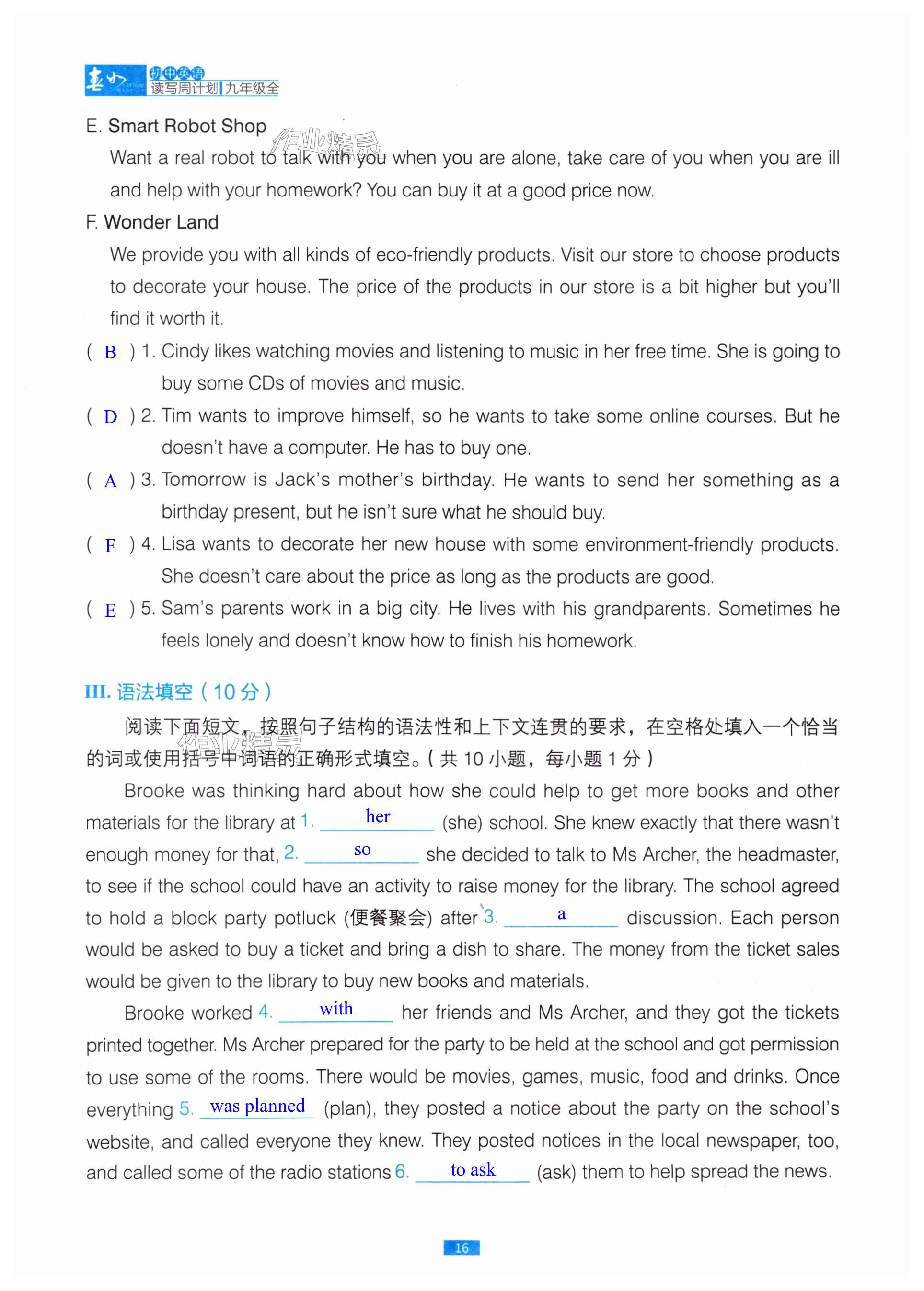 注:目前有些书本章节名称可能整理的还不是很完善,但都是按照顺序排列的,请同学们按照顺序仔细查找。练习册 2024年春如金卷读写周计划九年级英语全一册沪教版 答案主要是用来给同学们做完题方便对答案用的,请勿直接抄袭。