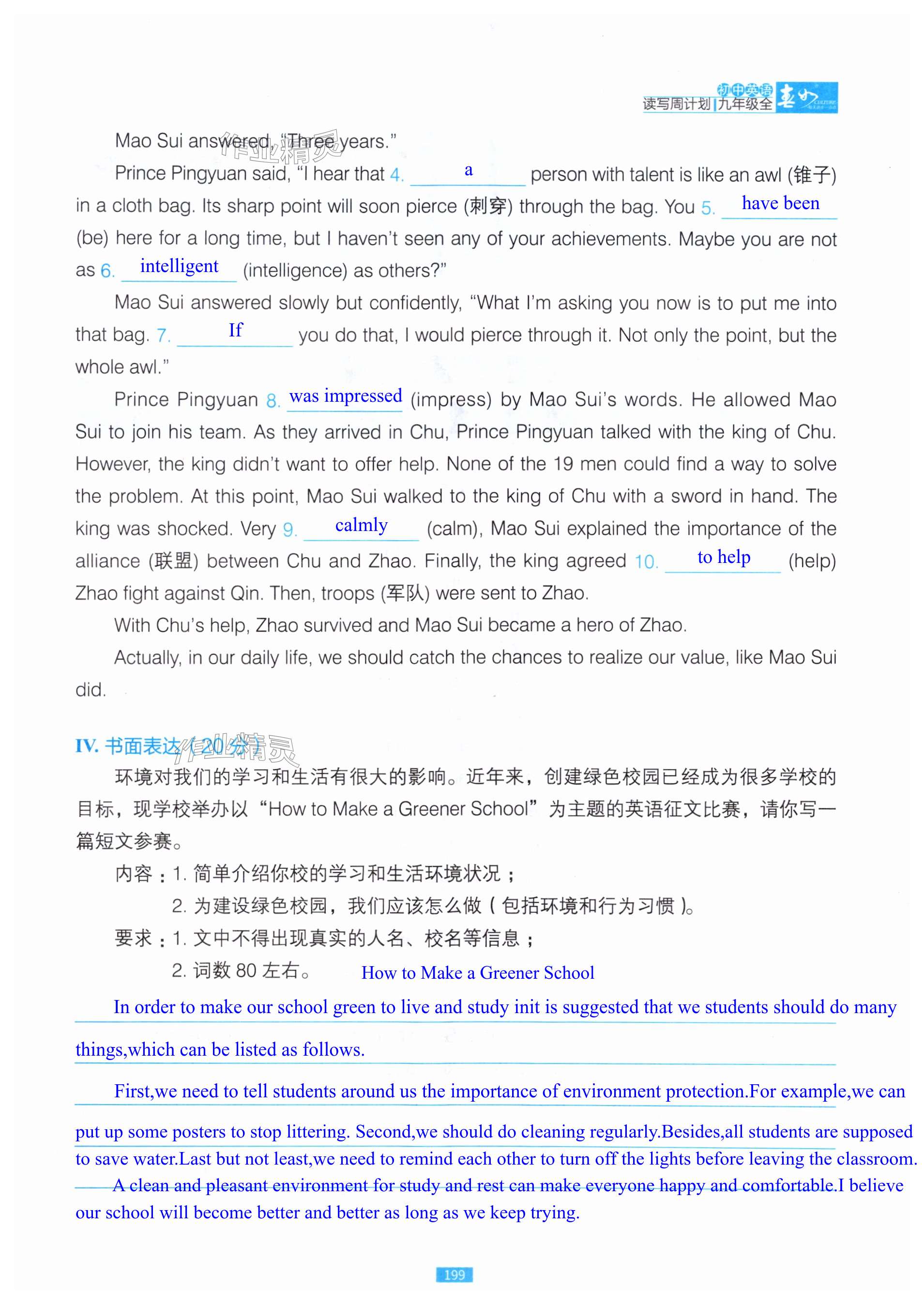 《2024年春如金卷读写周计划九年级英语全一册沪教版》