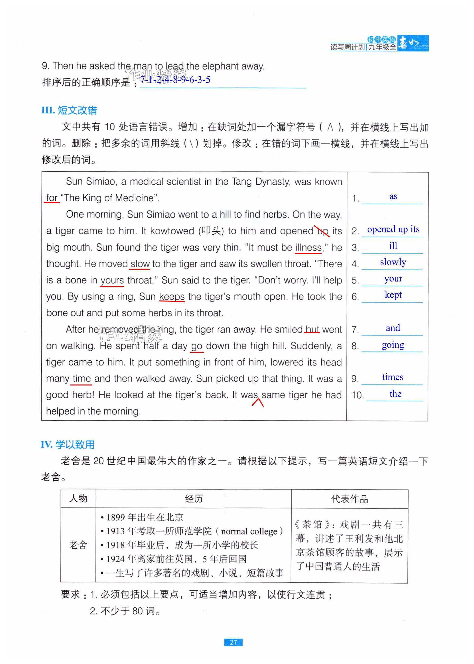 注:目前有些书本章节名称可能整理的还不是很完善,但都是按照顺序排列的,请同学们按照顺序仔细查找。练习册 2024年春如金卷读写周计划九年级英语全一册沪教版 答案主要是用来给同学们做完题方便对答案用的,请勿直接抄袭。