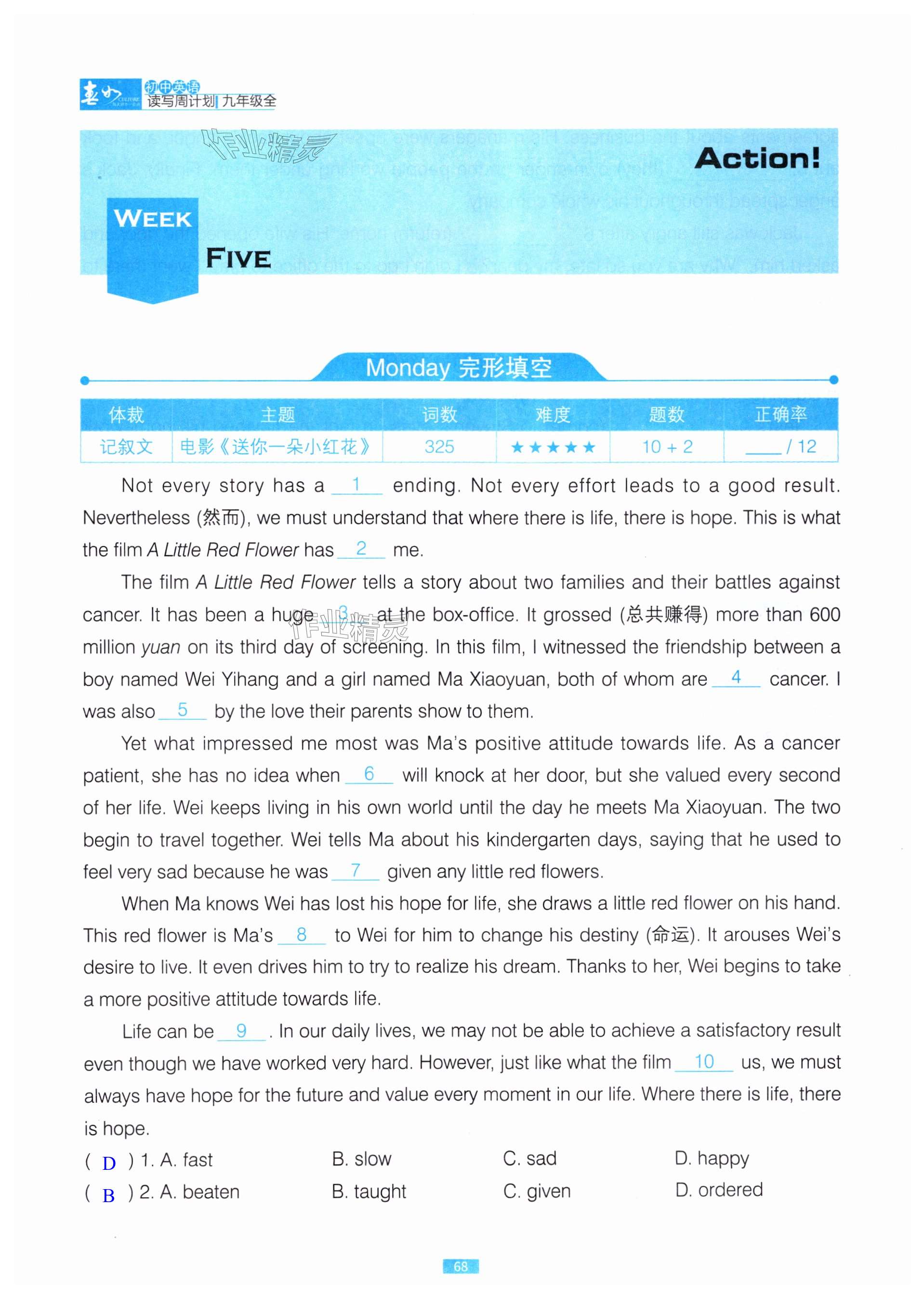 《2024年春如金卷读写周计划九年级英语全一册沪教版》