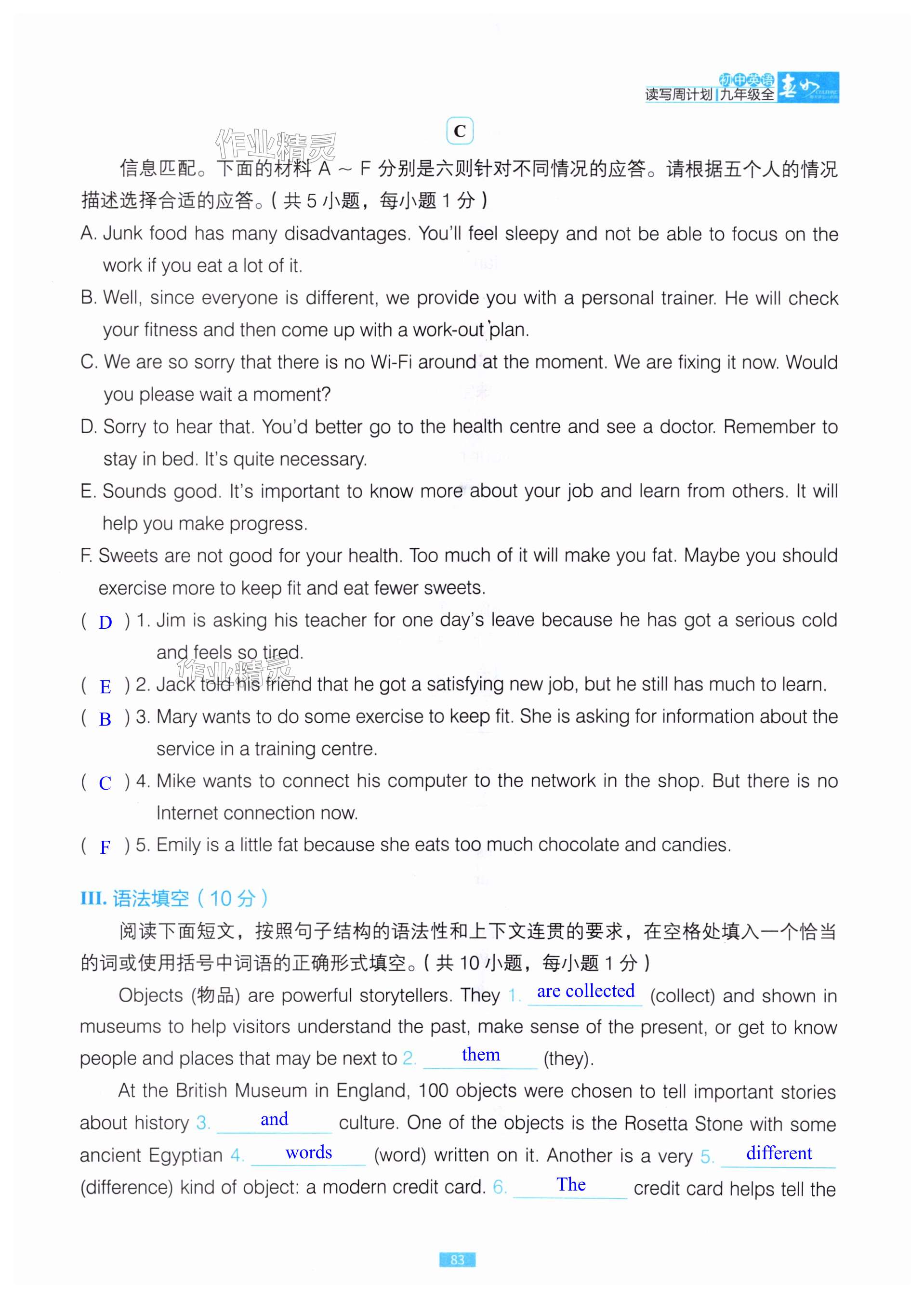 注:目前有些书本章节名称可能整理的还不是很完善,但都是按照顺序排列的,请同学们按照顺序仔细查找。练习册 2024年春如金卷读写周计划九年级英语全一册沪教版 答案主要是用来给同学们做完题方便对答案用的,请勿直接抄袭。