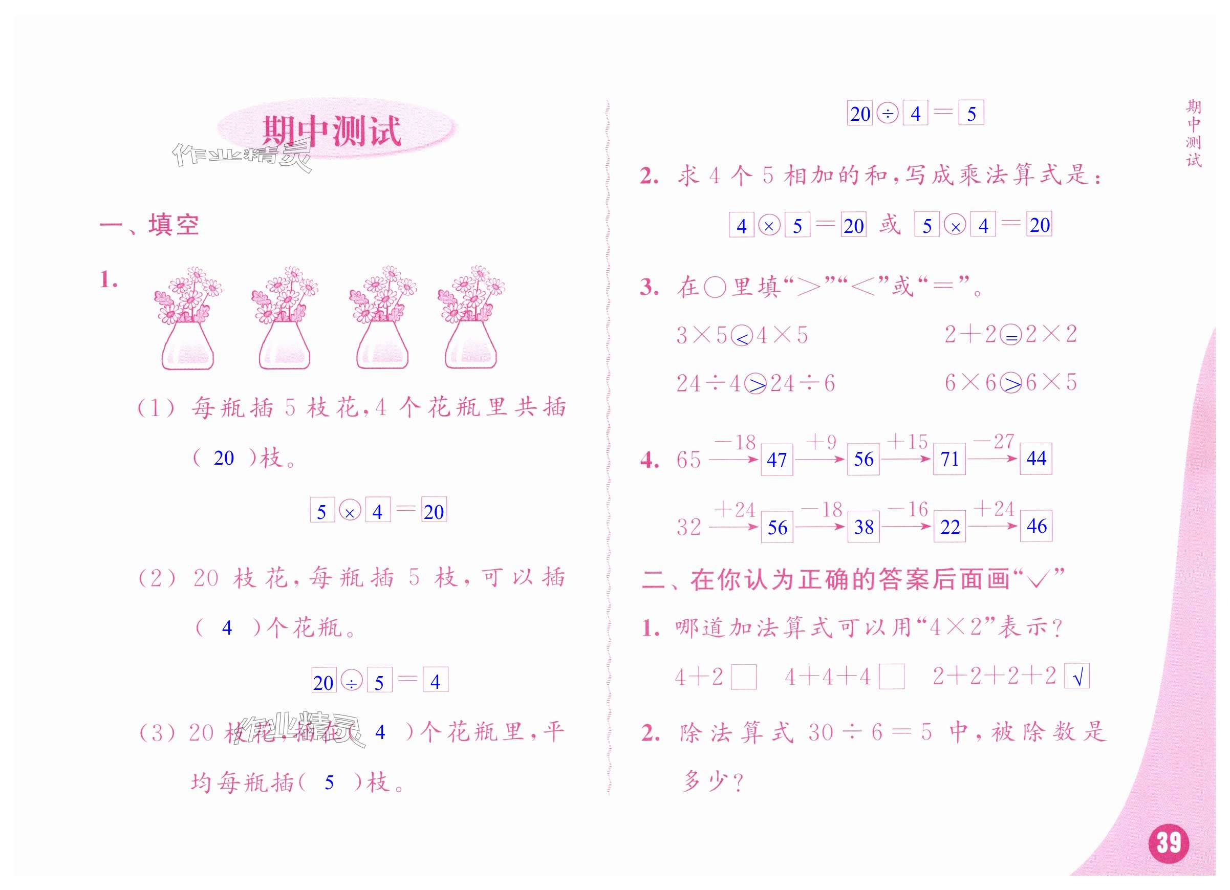 注:目前有些书本章节名称可能整理的还不是很完善,但都是按照顺序排列的,请同学们按照顺序仔细查找。练习册 2024年练习与测试二年级数学上册苏教版彩色版提优版 答案主要是用来给同学们做完题方便对答案用的,请勿直接抄袭。