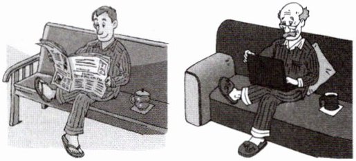 1. Thirty years ago, the man read ______ for ______. Now he can ______ ______ ______ the Internet.