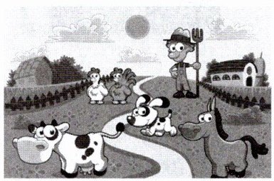 I ______ a farm. There ______ some animals on it. ______ ______ a ______, a ______, a ______ and two ______.