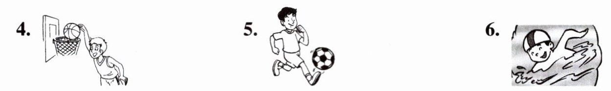 ( )4. A. I like music. B. Look! C. Sorry, I don't know.