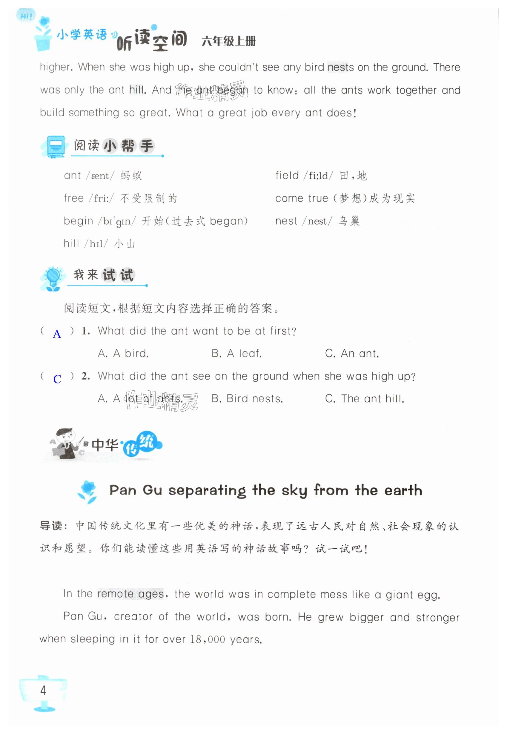 注:目前有些书本章节名称可能整理的还不是很完善,但都是按照顺序排列的,请同学们按照顺序仔细查找。练习册 2024年英语听读空间六年级英语上册译林版 答案主要是用来给同学们做完题方便对答案用的,请勿直接抄袭。