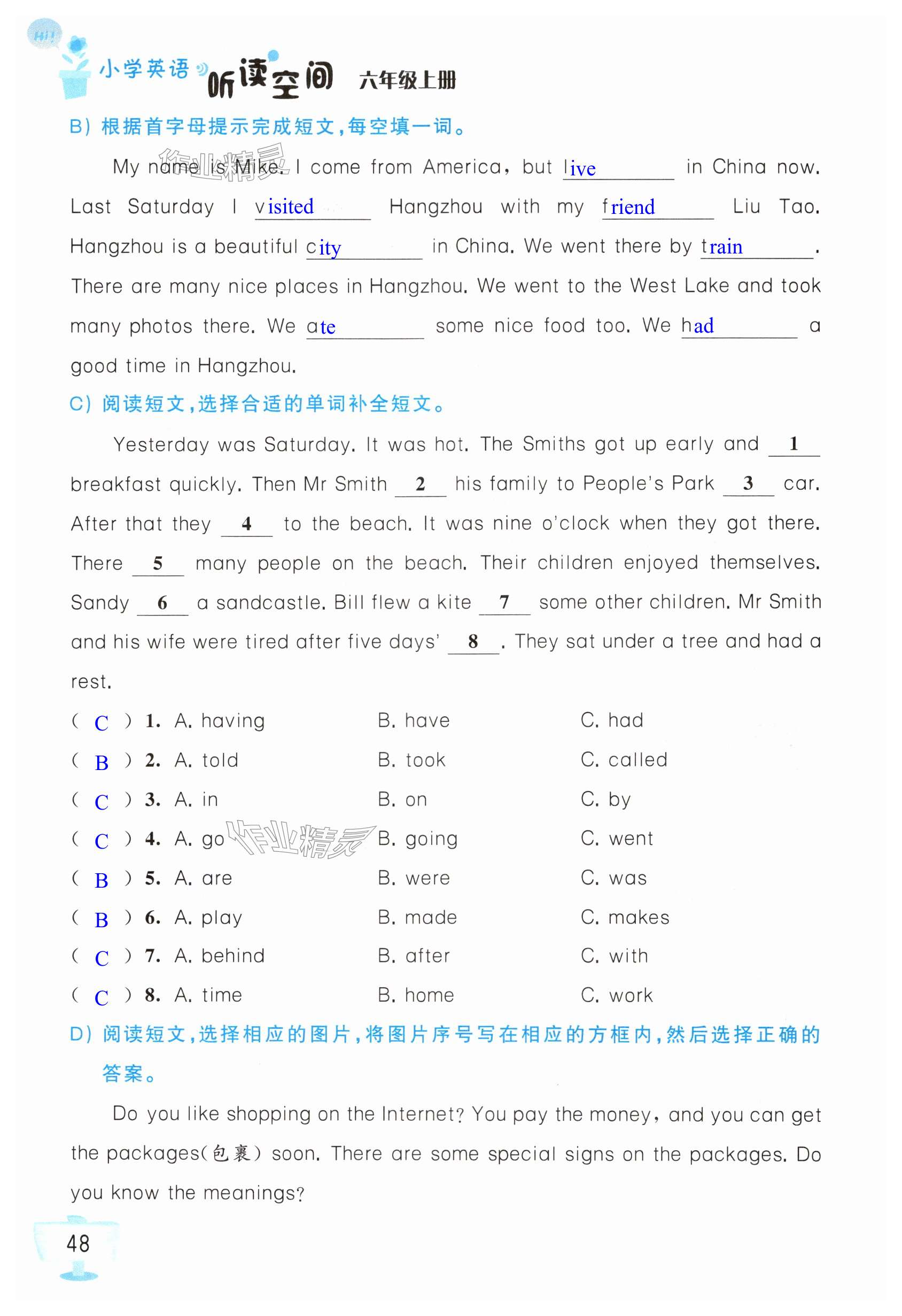 注:目前有些书本章节名称可能整理的还不是很完善,但都是按照顺序排列的,请同学们按照顺序仔细查找。练习册 2024年英语听读空间六年级英语上册译林版 答案主要是用来给同学们做完题方便对答案用的,请勿直接抄袭。