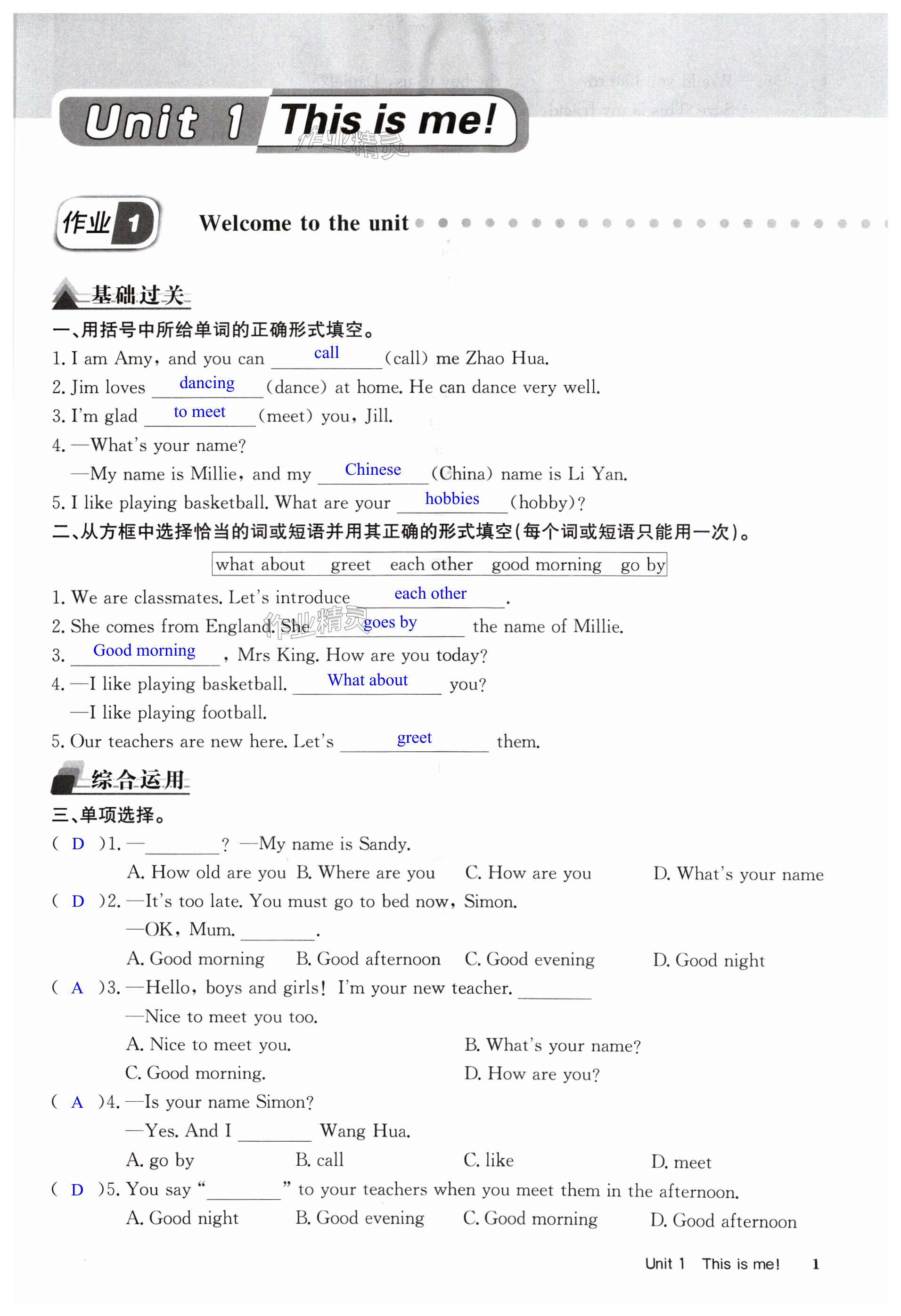 注:目前有些书本章节名称可能整理的还不是很完善,但都是按照顺序排列的,请同学们按照顺序仔细查找。练习册 2024年启东中学作业本七年级英语上册译林版连云港专版 答案主要是用来给同学们做完题方便对答案用的,请勿直接抄袭。