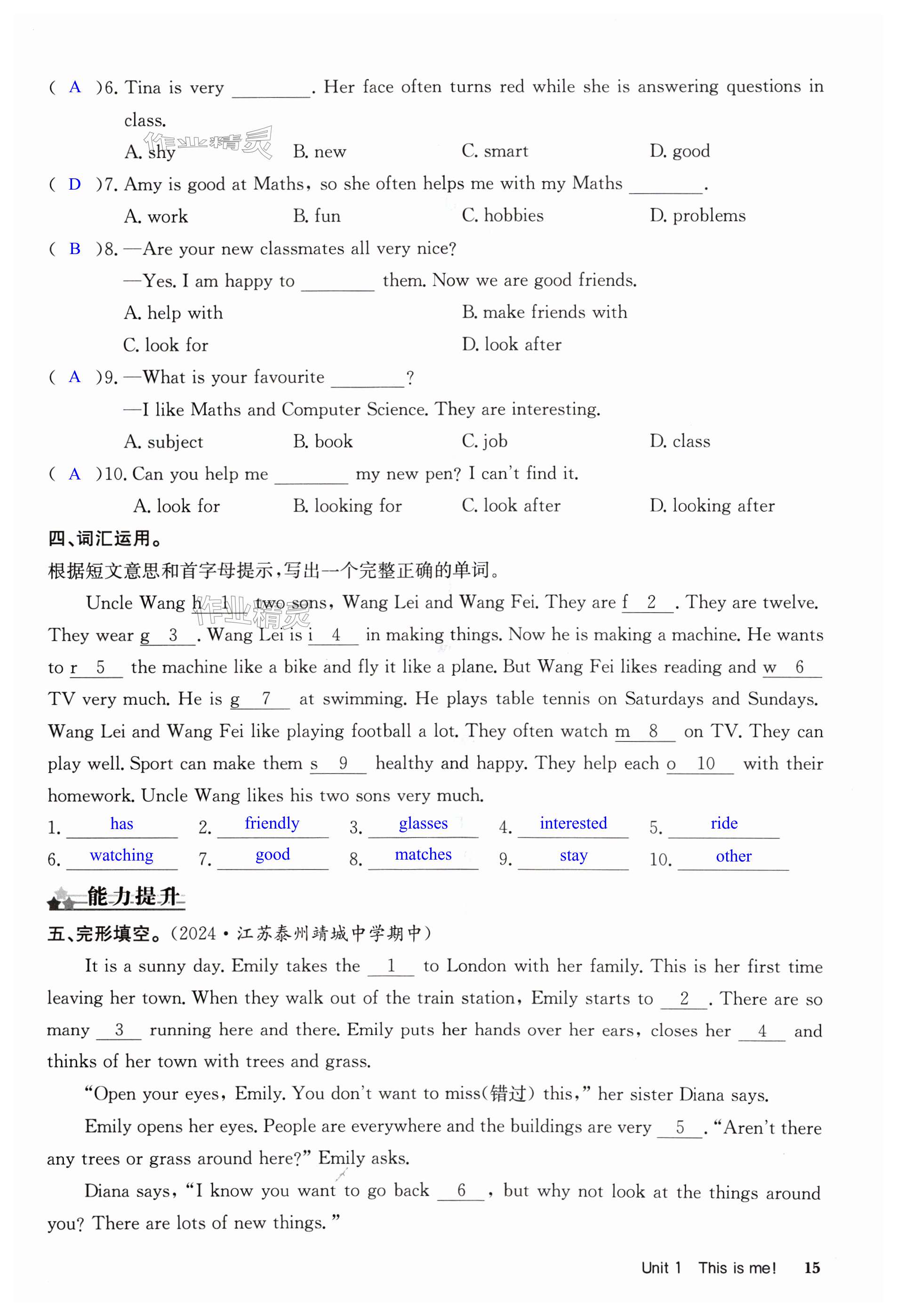 注:目前有些书本章节名称可能整理的还不是很完善,但都是按照顺序排列的,请同学们按照顺序仔细查找。练习册 2024年启东中学作业本七年级英语上册译林版连云港专版 答案主要是用来给同学们做完题方便对答案用的,请勿直接抄袭。