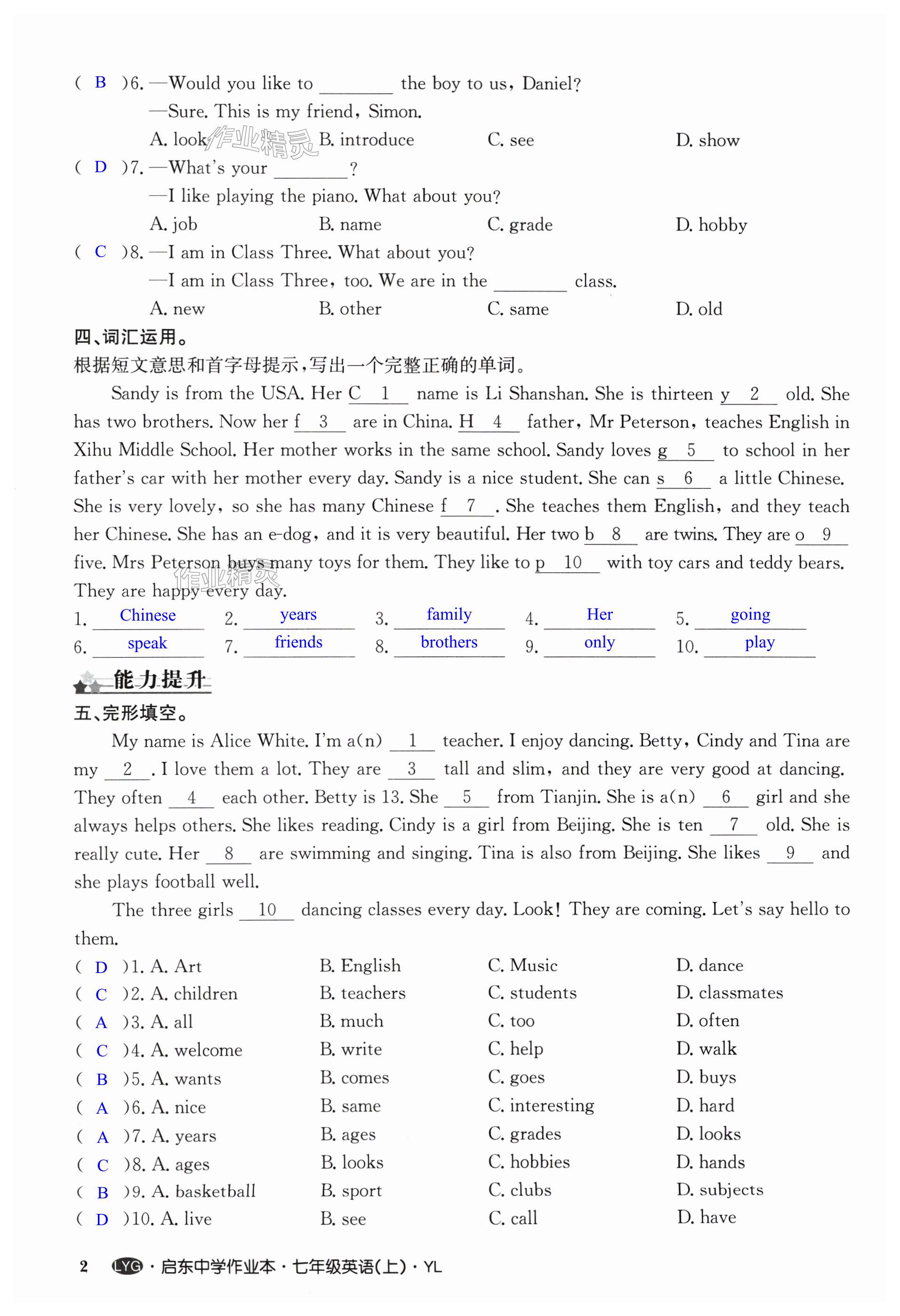 注:目前有些书本章节名称可能整理的还不是很完善,但都是按照顺序排列的,请同学们按照顺序仔细查找。练习册 2024年启东中学作业本七年级英语上册译林版连云港专版 答案主要是用来给同学们做完题方便对答案用的,请勿直接抄袭。