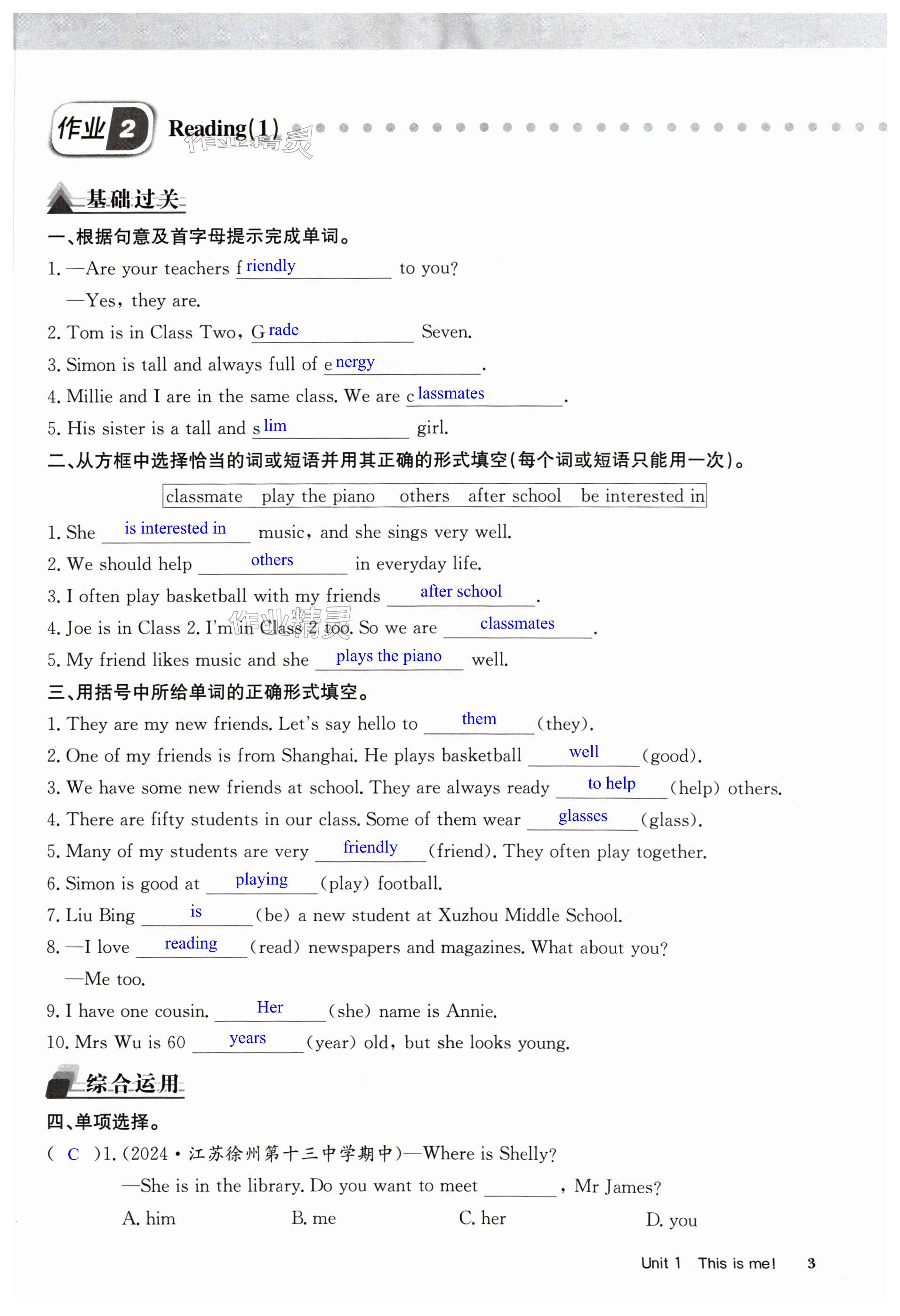 注:目前有些书本章节名称可能整理的还不是很完善,但都是按照顺序排列的,请同学们按照顺序仔细查找。练习册 2024年启东中学作业本七年级英语上册译林版连云港专版 答案主要是用来给同学们做完题方便对答案用的,请勿直接抄袭。