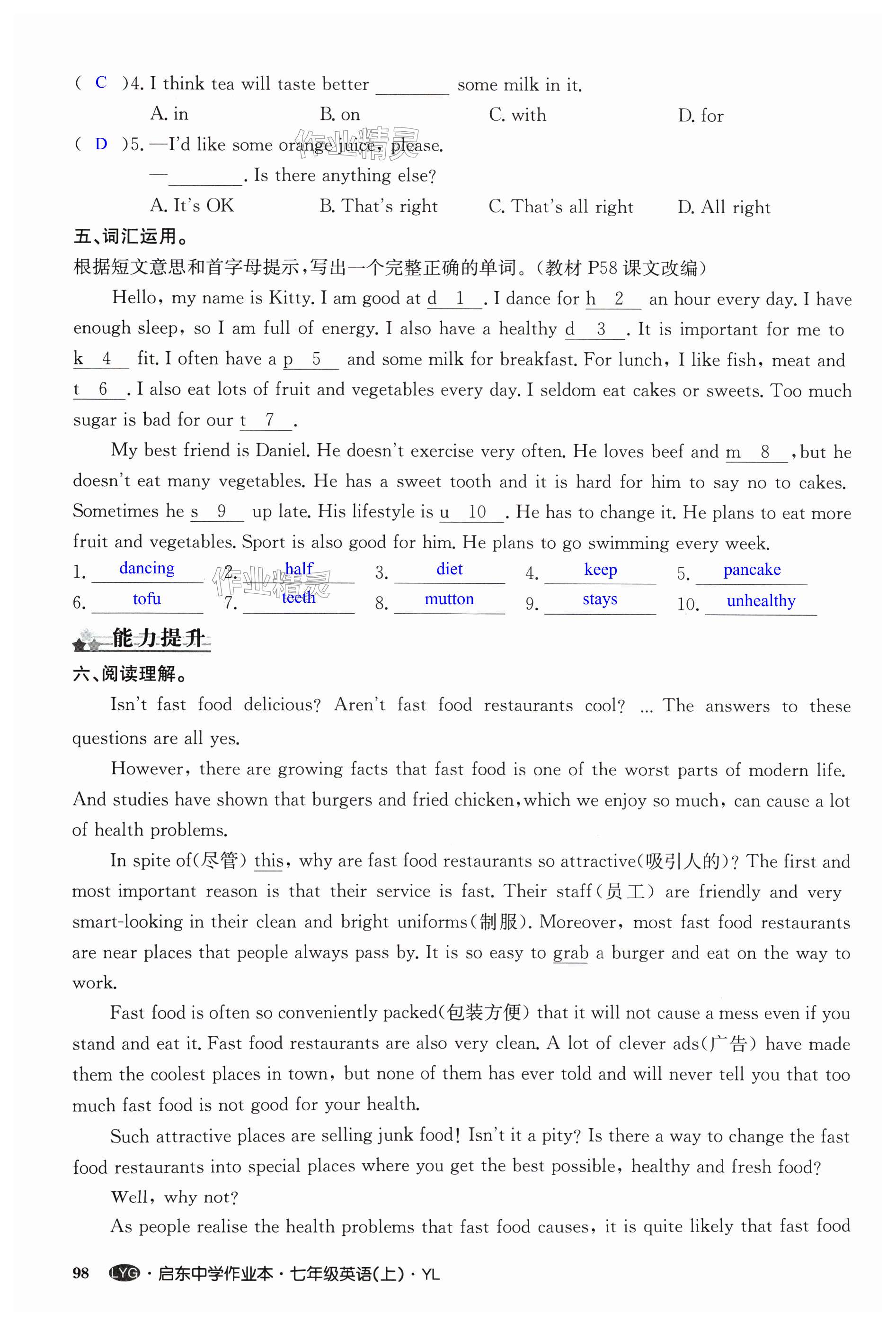 注:目前有些书本章节名称可能整理的还不是很完善,但都是按照顺序排列的,请同学们按照顺序仔细查找。练习册 2024年启东中学作业本七年级英语上册译林版连云港专版 答案主要是用来给同学们做完题方便对答案用的,请勿直接抄袭。