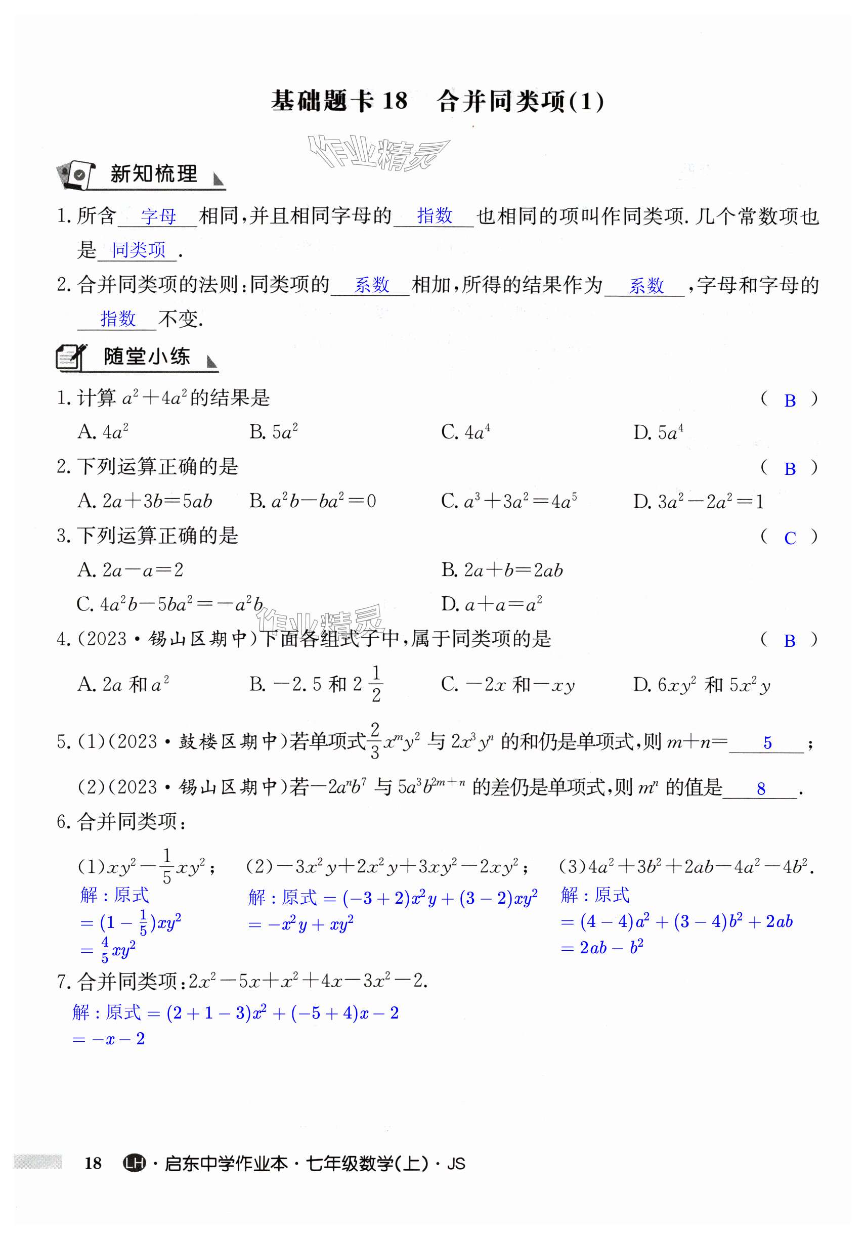 注:目前有些书本章节名称可能整理的还不是很完善,但都是按照顺序排列的,请同学们按照顺序仔细查找。练习册 2024年启东中学作业本七年级数学上册苏科版连淮专版 答案主要是用来给同学们做完题方便对答案用的,请勿直接抄袭。