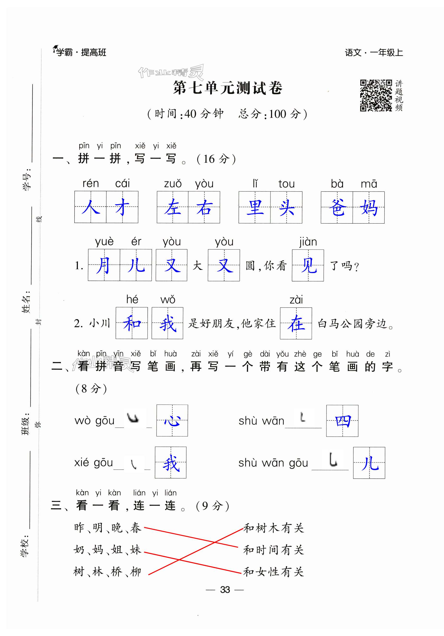 注:目前有些书本章节名称可能整理的还不是很完善,但都是按照顺序排列的,请同学们按照顺序仔细查找。练习册 2024年经纶学典提高班一年级语文上册人教版 答案主要是用来给同学们做完题方便对答案用的,请勿直接抄袭。