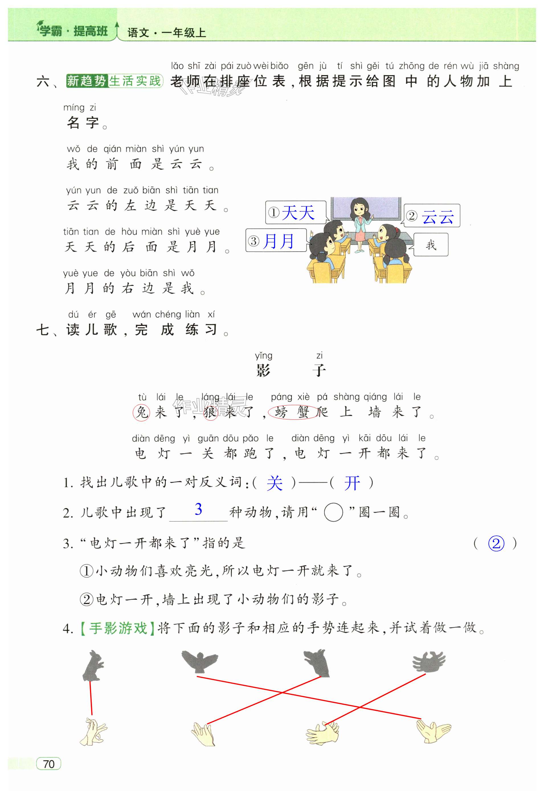 注:目前有些书本章节名称可能整理的还不是很完善,但都是按照顺序排列的,请同学们按照顺序仔细查找。练习册 2024年经纶学典提高班一年级语文上册人教版 答案主要是用来给同学们做完题方便对答案用的,请勿直接抄袭。