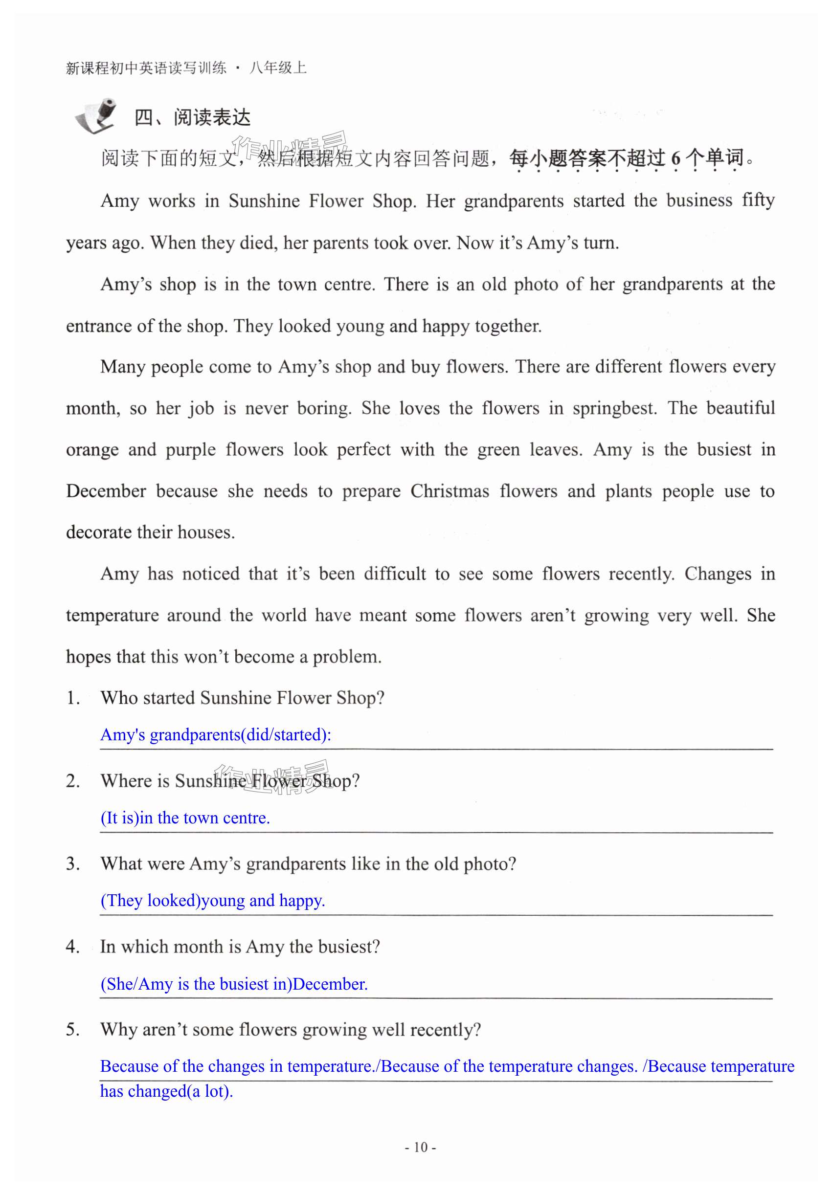 注:目前有些书本章节名称可能整理的还不是很完善,但都是按照顺序排列的,请同学们按照顺序仔细查找。练习册 2024年新课程英语读写训练八年级上册译林版 答案主要是用来给同学们做完题方便对答案用的,请勿直接抄袭。