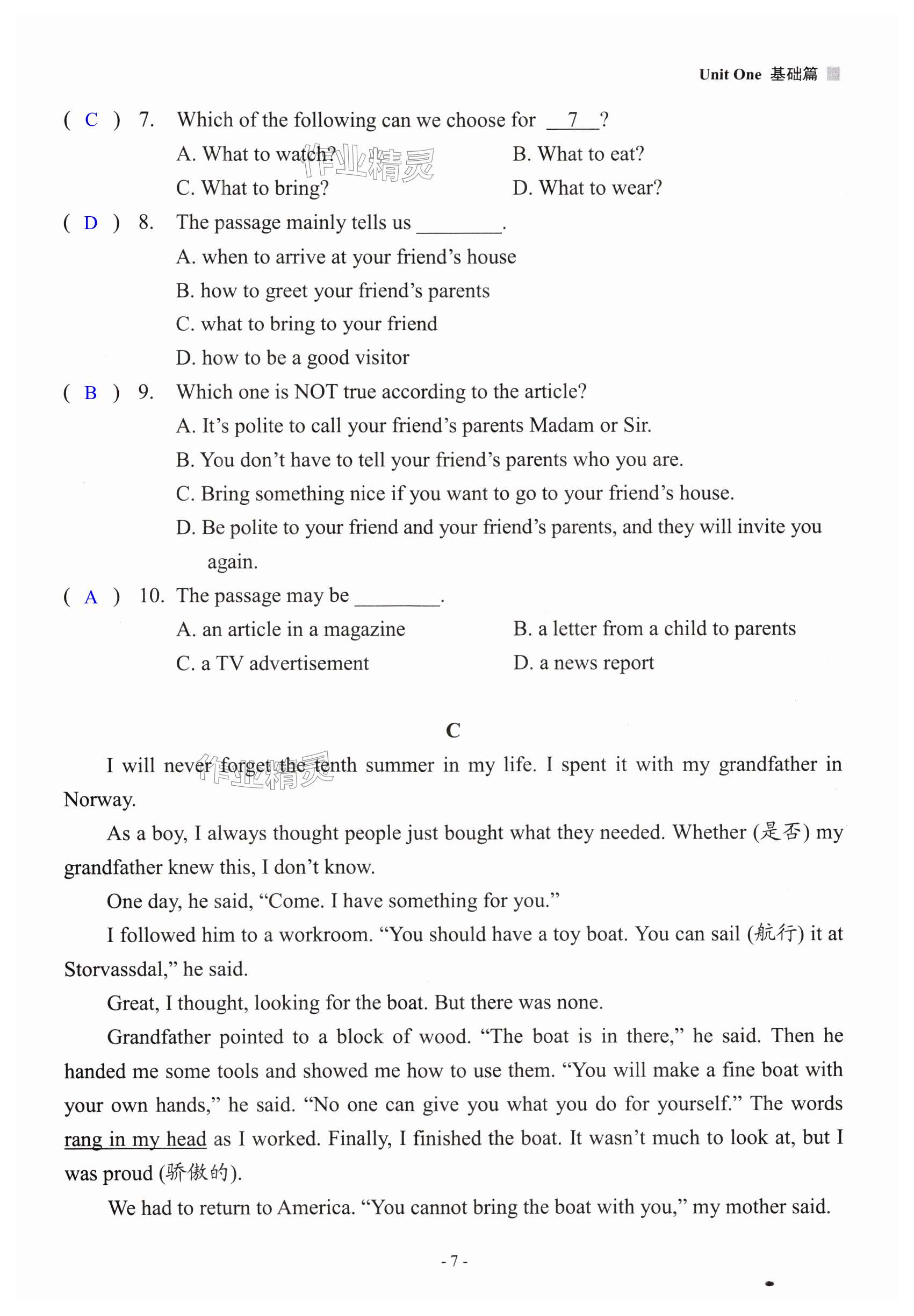 注:目前有些书本章节名称可能整理的还不是很完善,但都是按照顺序排列的,请同学们按照顺序仔细查找。练习册 2024年新课程英语读写训练八年级上册译林版 答案主要是用来给同学们做完题方便对答案用的,请勿直接抄袭。