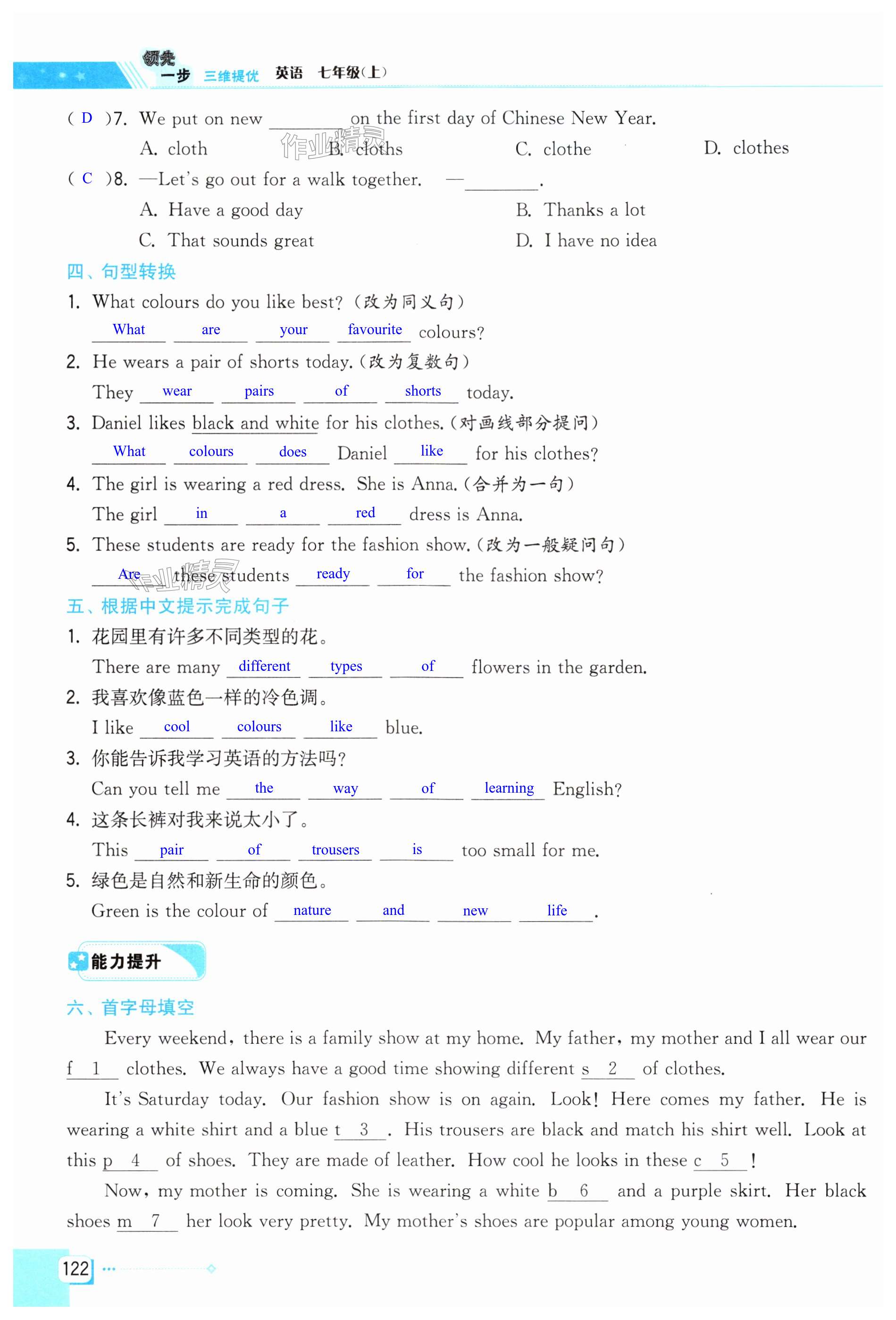 注:目前有些书本章节名称可能整理的还不是很完善,但都是按照顺序排列的,请同学们按照顺序仔细查找。练习册 2024年领先一步三维提优七年级英语上册译林版 答案主要是用来给同学们做完题方便对答案用的,请勿直接抄袭。