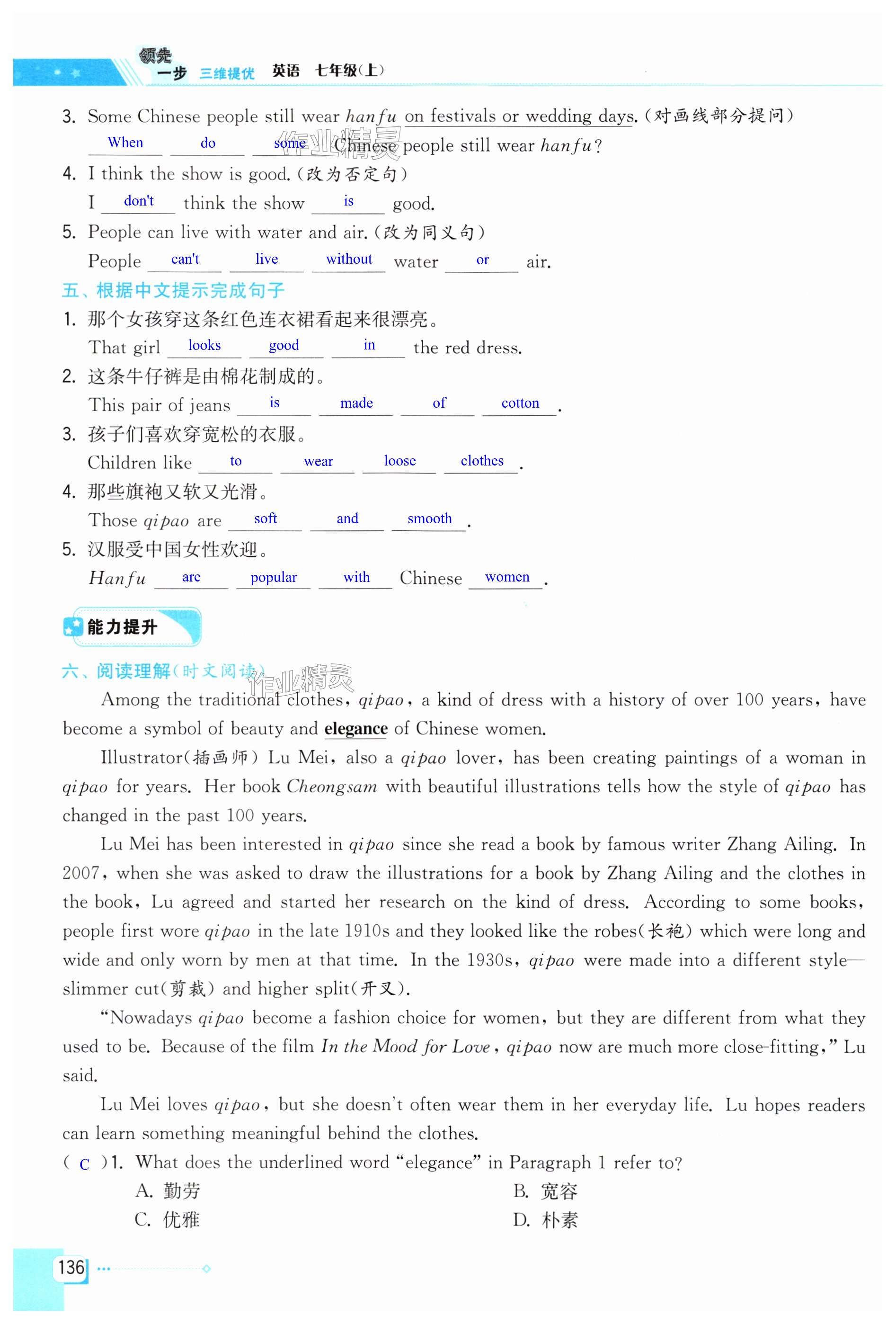 注:目前有些书本章节名称可能整理的还不是很完善,但都是按照顺序排列的,请同学们按照顺序仔细查找。练习册 2024年领先一步三维提优七年级英语上册译林版 答案主要是用来给同学们做完题方便对答案用的,请勿直接抄袭。