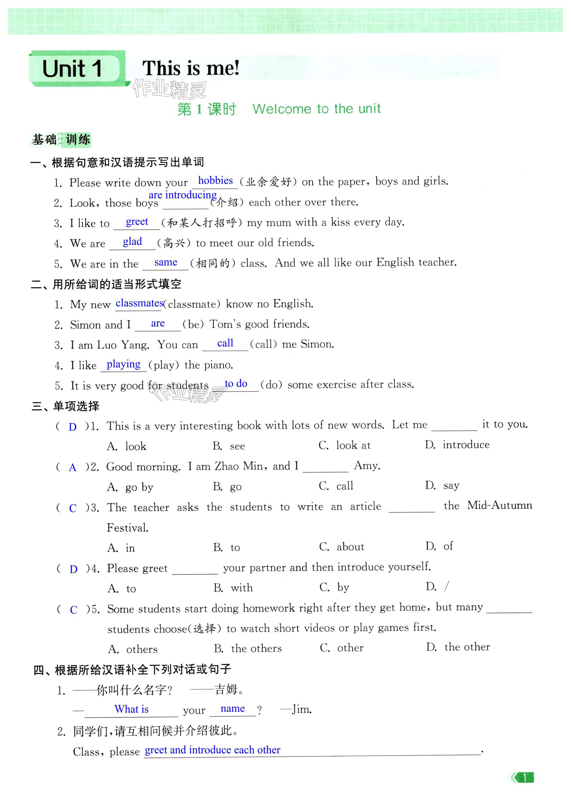注:目前有些书本章节名称可能整理的还不是很完善,但都是按照顺序排列的,请同学们按照顺序仔细查找。练习册 2024年课时提优计划作业本七年级英语上册译林版 答案主要是用来给同学们做完题方便对答案用的,请勿直接抄袭。