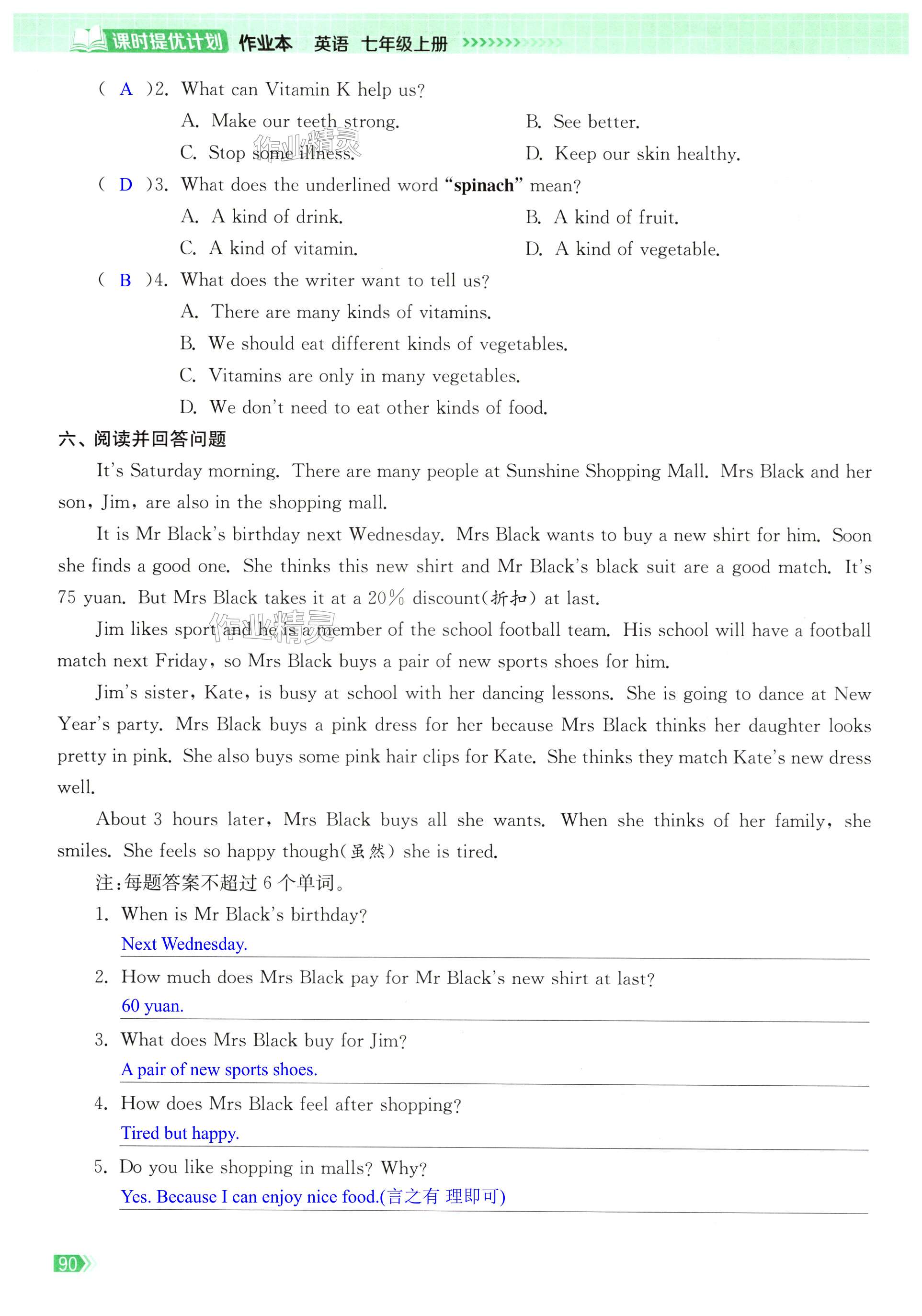 注:目前有些书本章节名称可能整理的还不是很完善,但都是按照顺序排列的,请同学们按照顺序仔细查找。练习册 2024年课时提优计划作业本七年级英语上册译林版 答案主要是用来给同学们做完题方便对答案用的,请勿直接抄袭。