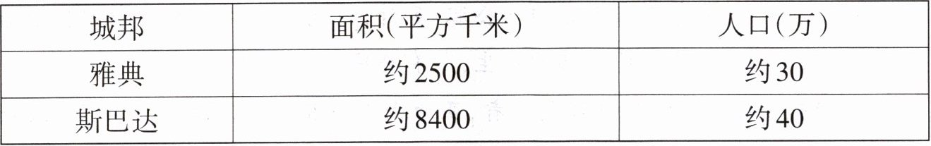 6. 下表所示内容体现了古代希腊城邦的特点是 ( )