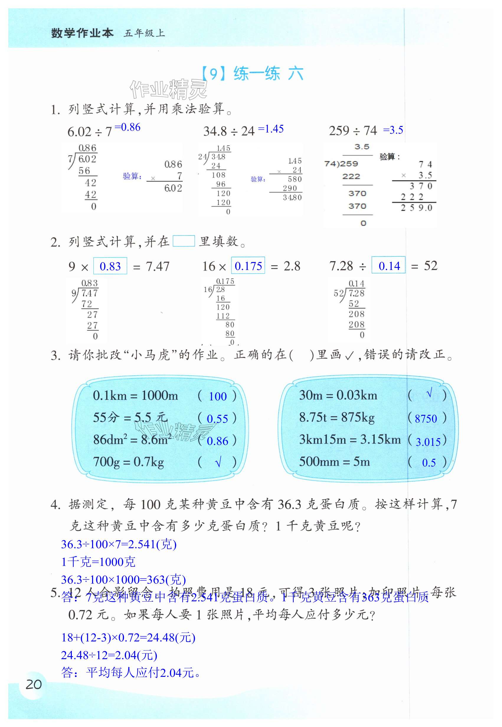 注:目前有些书本章节名称可能整理的还不是很完善,但都是按照顺序排列的,请同学们按照顺序仔细查找。练习册 2025年作业本浙江教育出版社五年级数学上册浙教版 答案主要是用来给同学们做完题方便对答案用的,请勿直接抄袭。